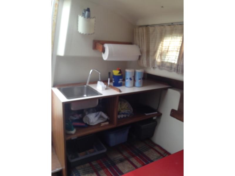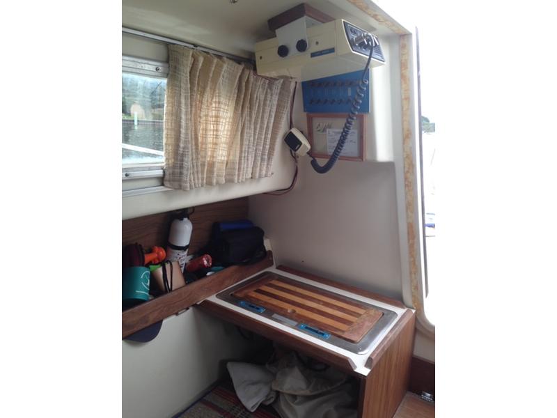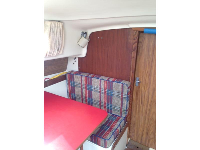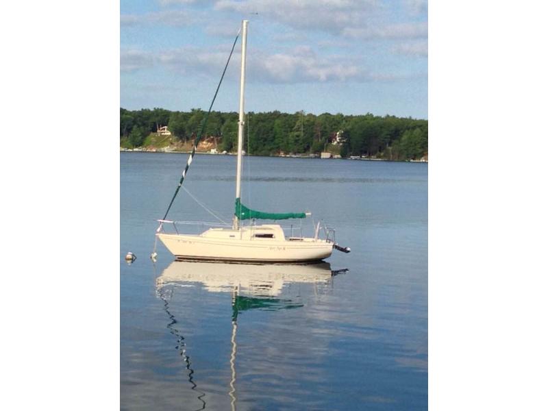 A well kept freshwater boat. A very solid and good sailing boat with a fin keel and spade rudder. Rudder bearings rebuilt. Dry bilge. Comfortable cabin and v-berth. Galley table converts to a double bunk. Cockpit is comfortable and self bailing. Solidly constructed, handles well when the wind pipes up and user-friendly. 2200 pound iron keel makes her fairly stiff. Will rename the boat to your name choice. Mast height 35 feet above DWL. Built-in motor well and fuel tank storage.Trailer included.