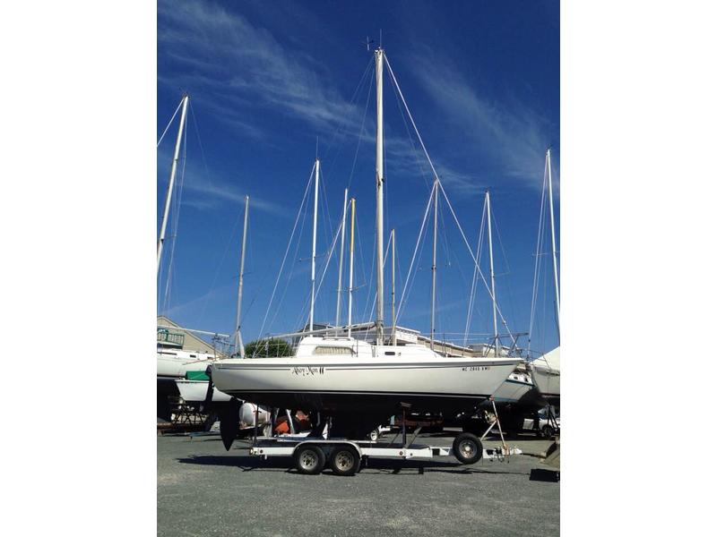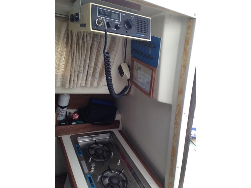 Roller furling jib, vhf radio, depth finder, very dependable 9 horsepower Nissan electric start long shaft outboard with battery charging, new Jabsco marine head, easy to start alcohol two burner stove, anchor and rode, life vests, yellow horseshoe life ring, manual bilge pump, trailer for storage, fenders and dock lines.
