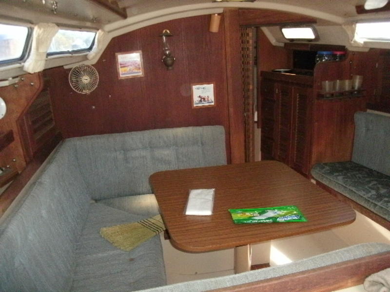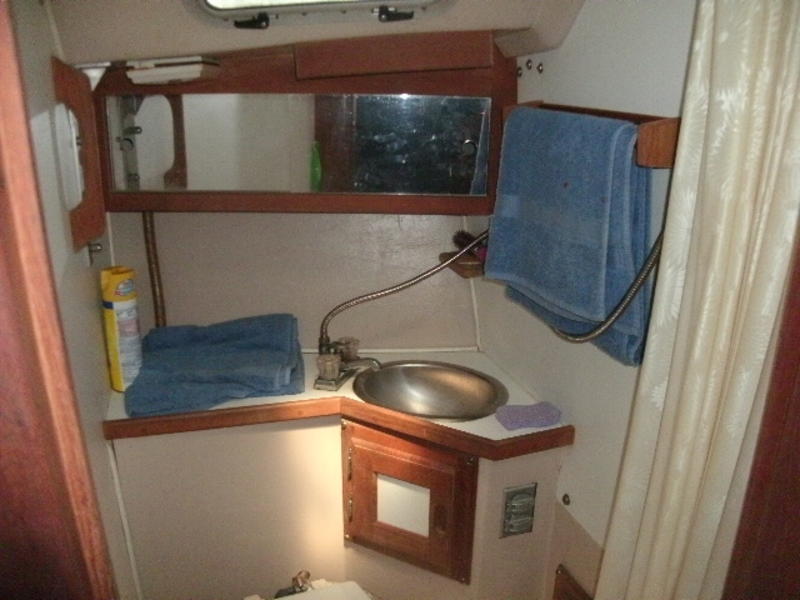 boat features Marine head,sink and shower holding tank 17 Gal macerator to empty holding tank at sea Hot and cold pressure water system Water capacity 49 Gal Galley two ss sinks,two cabnets w/draws,two burner natural gas stove w/oven,icebox,sea water pum Salon w seats 6 Berths 3 sleeps 6 Clothes locker Navigation station Edson Pedestal wheel steering w/ritchie binnacle compass new 2010 Emergency steering if wheel steering fails Emergency manual bikge pump in cockpit Cock-pit Cushions Custom made Sunbrella Bimini new 2015 Epoxy bottom no blisters Fiberglass covered stringers SS swim ladder Rail mount ss Magma gas grill Cockpit folding table