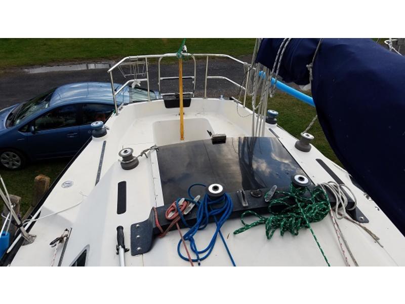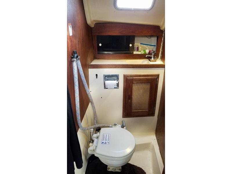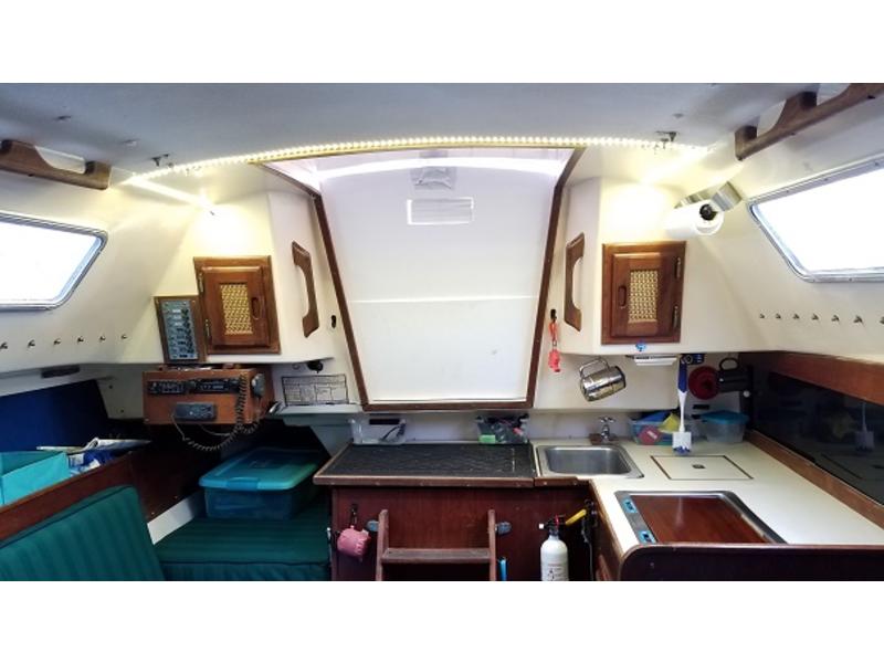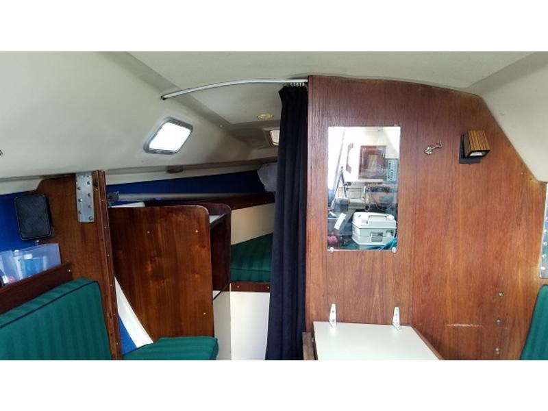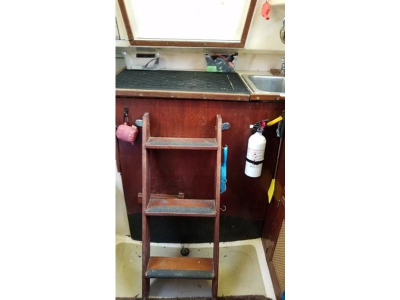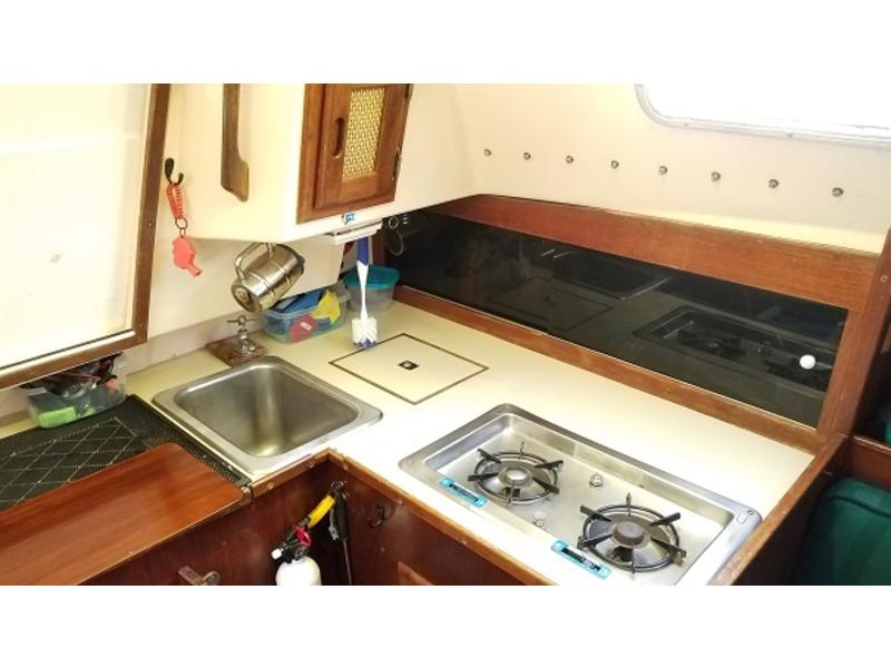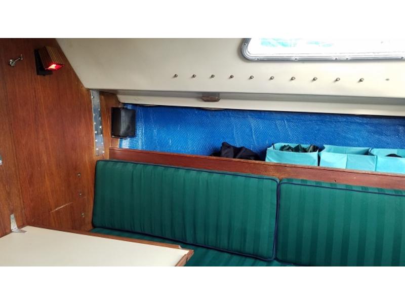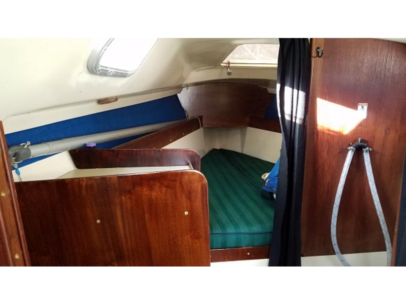1980 San Juan 28 sailboat in good condition. La Coule Douce, She sails like a dream. If you set her sails right she will sail herself straight as an arrow into the wind. Fastest 28' boat on the lake. The San Juan 28 was designed for single-handed racing/sailing all lines lead back to the cockpit. New sails in 2006 with 130 genoa in very good shape. 15 hp Yanmar motor rebuilt in 2006 with very few hours on it. New in 2017 water pump, thermostat, hoses, cooling system clean and flush, new zink anoide. 3 New batteries 2017 - 1-12v starting and 2-6v House Furlex Furler 2006 Adjustable backstay, Boom vang New LED Lights throughout. Depth and Speed gauges. 2 Compass. New cushions with high density 4" foam. 2006 New head in 2006 New Rail mounted SS Barbie Pressurized water in kitchen and head. Tiller Tamer, Marine Radio, AMFMcassett with graphic equalizer power amp for a killer sound system. Custom Steel cradle with 6 stand mounts. Winter Storage and Spring Drop-in all paid up. Practical Sailor summarizes their review of the boat by saying "The SJ28 was designed and built by a company whose owners were performance-oriented and used to sailing boats to their limits. She displays good performance...the cockpit is large enough for four to six...or a race crew, to sail with elbow room. It's small for dockside entertaining....more than 20 years after their construction, the living quarters in our test boat showed little sign of wear, despite the boat's hard use as a racer and cruiser. 6'4" headroom and fold up saloon table. |