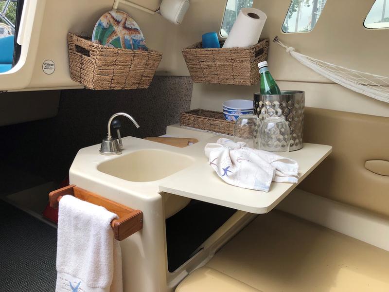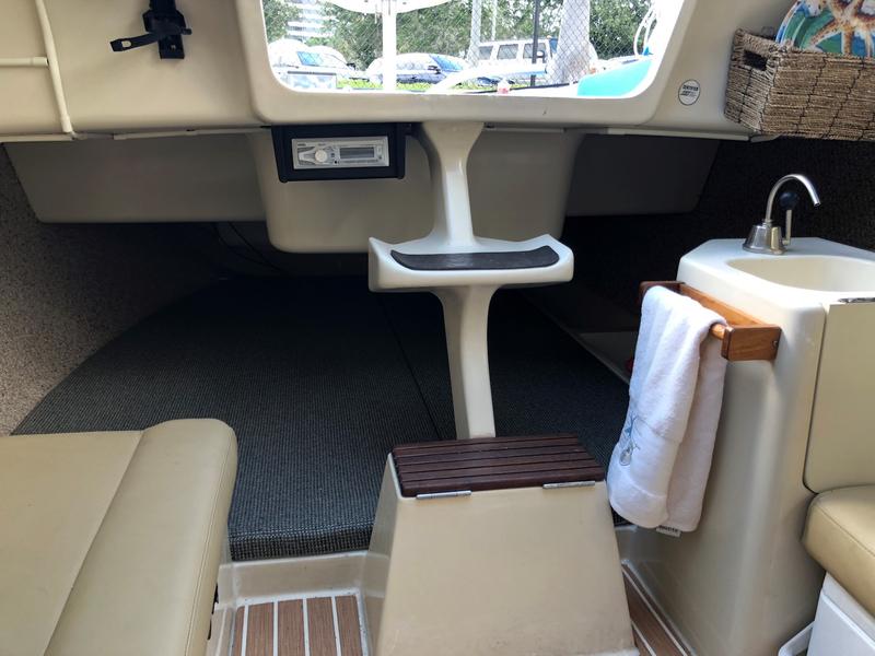 See MORE pictures at www.mastheadcommunication.comIt's a true hybrid (electric, wind and solar) and it has been professionally refitted and repowered with a Torqeedo Travel 1003C (with a 915w lithium battery) in addition to a spare 530w lithium battery, 50w solar panel with a built-in charge controller for plug and play alternative charging, remote throttle, Torqeedo travel bags for motor, batteries and solar panel. This Hunter Hybrid is equipped with the short shaft model - so if you want to add a dinghy, you'll be able to interchange its 29lb. electric outboard to be used on both vessels. |