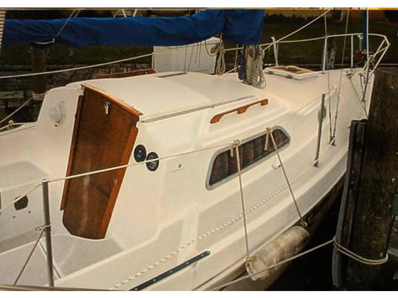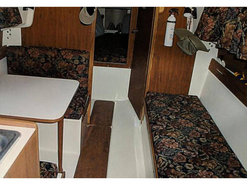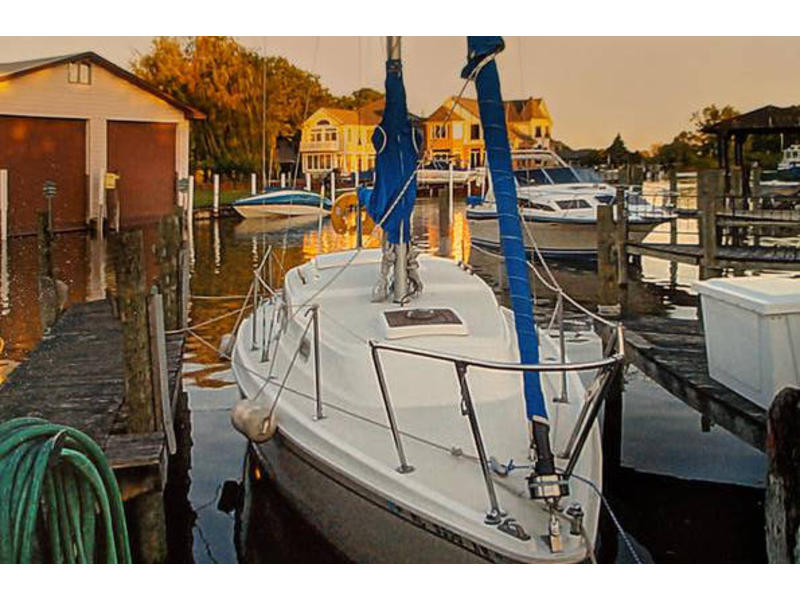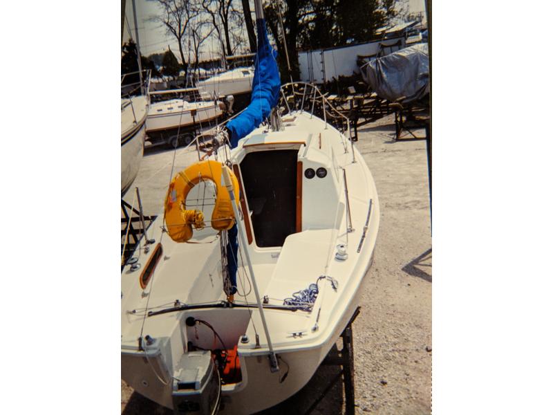 Beautiful 26 ft sail boat ready to sail! Full battened North main sail, 155% roller furling Genoa north with blue sun cover. Berths 5. Varnished tiller steering with cover. Full kitchen, dining area and toilet. Complete with life jackets. Teak Swim ladder, stereo, navigation station with light, racing sails. 1995 Honda 9.9 outboard motor. Comes with trailer. Many extra. $6000 OBO. More pics if you're serious. |