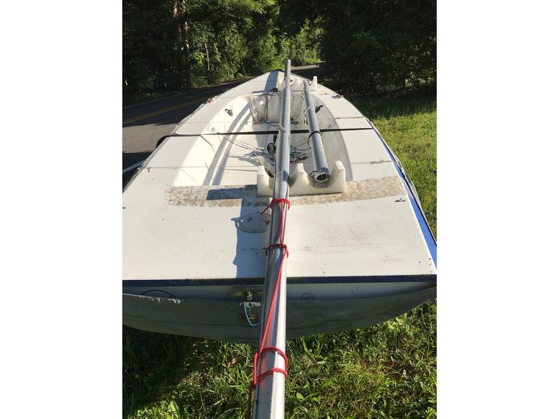 Vangard 15 a one design sailboat it is a very popular post college racing This one has not been used in over 15 years. When it was used by a college age girl it was not abused Its in excellent condition for its year, Just needs some TLC cleaning