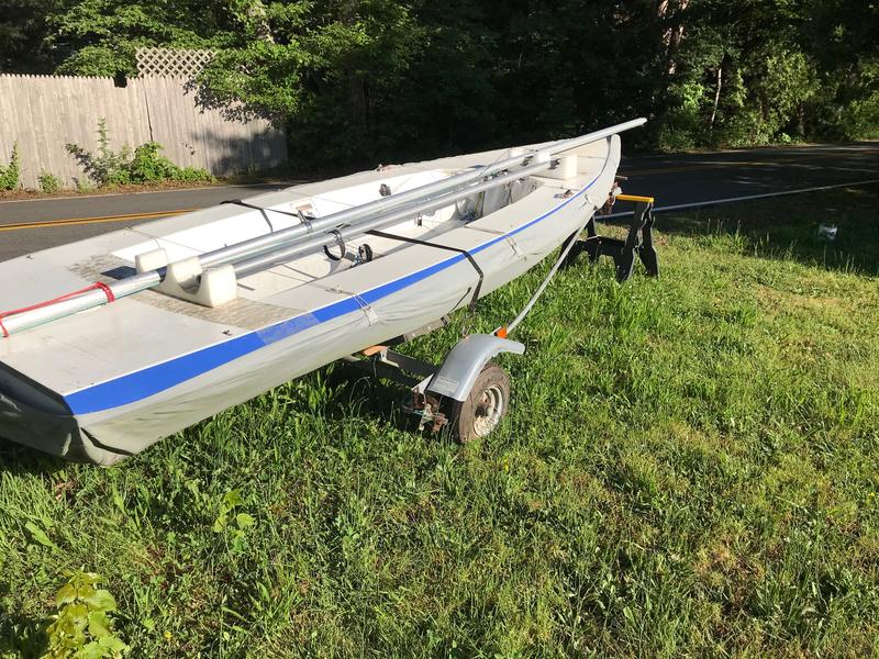 Comes with all sails boat & hull covers. center board & rudder & all standing & running rigging It has a road worthy trailer may needs some lights