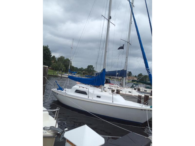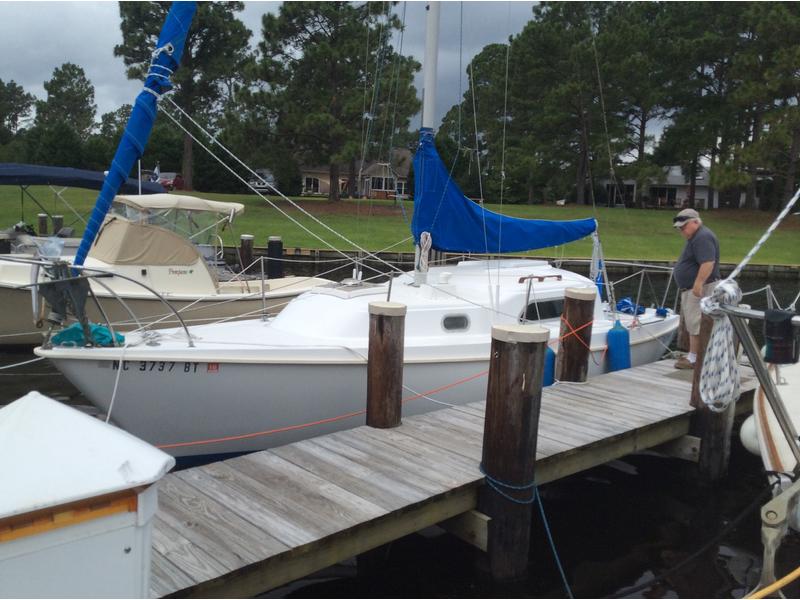 New sheets, battery and battery charger. Lowrance chartplotter, 2 anchors porta-potty, recently tuned Johnson sailcraft 6 hp outboard, tiller tamer, vhs radio