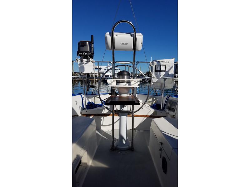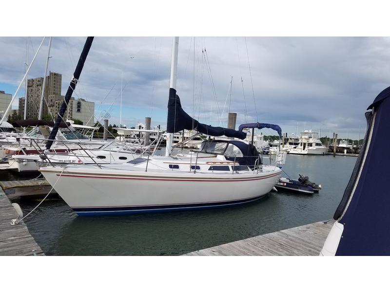 There are many updates including: New raw water pump New exhaust manifold New heat exchanger Stern rail seats New in 2015 135 genoa New 2015 loose footed Doyle full batten main sail New 2016 Raymarine ev100 auto pilot New 2016 Raymarine A78 chartplotter Navpod Bimini Connector sunshade Dodger new isinglass2018 New running rigging 2016 New batteries include One duel purpose and 2 Golf 6-volt cart house batteries with extended amp hours 12 volt DC 120 AC 50ft shore power electric cord 2 burner propane stove plus propane oven Double stainless steel sinks Large ice box that drains into bilge AM/FM stereo 4 speakers (2 in cabin, 2 in cockpit ) New VHF radio 2017 New cockpit RAM microphone 2017 New 3 blade prop 2016 Lazy jacks Outboard motor bracket for stern rail 70 gallon water tank 20 gallon fuel tank 20 gallon holding tank |
