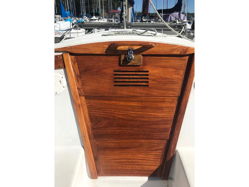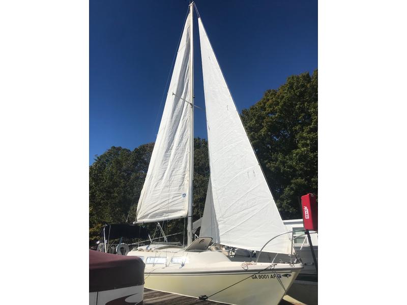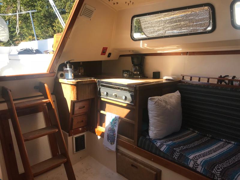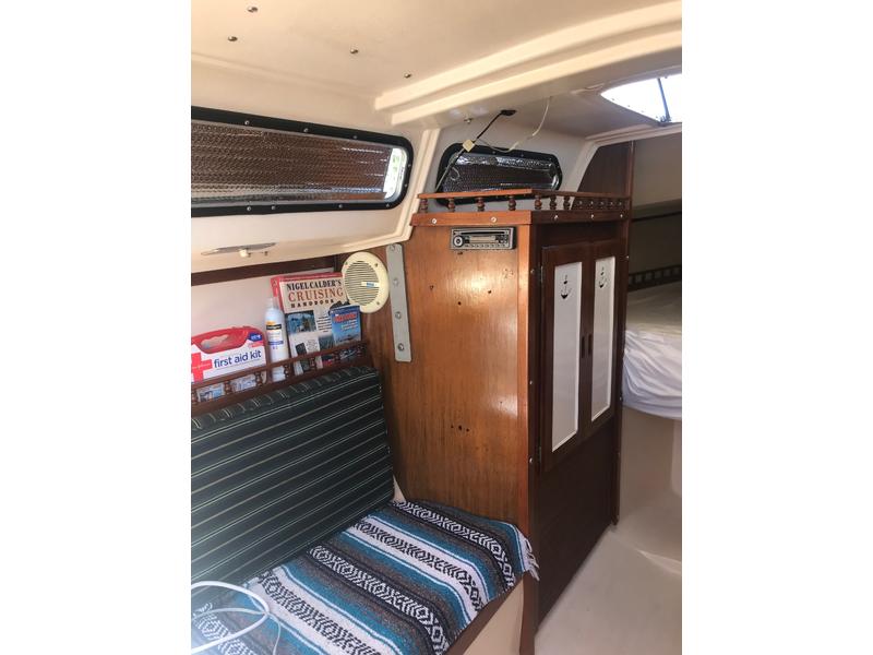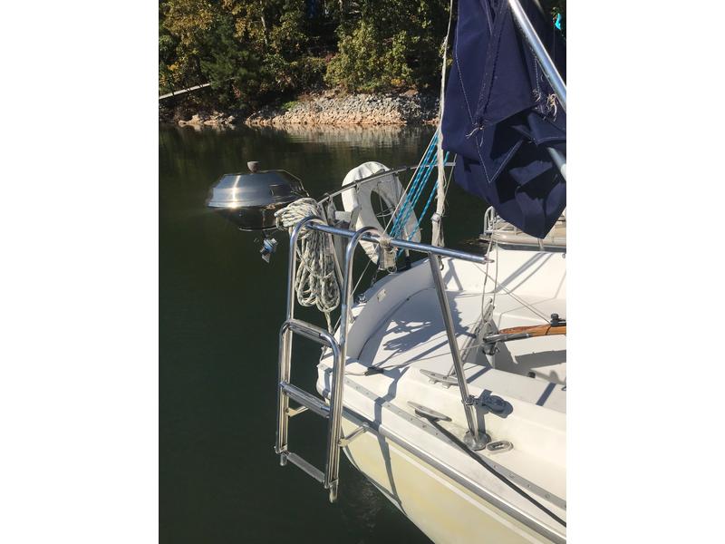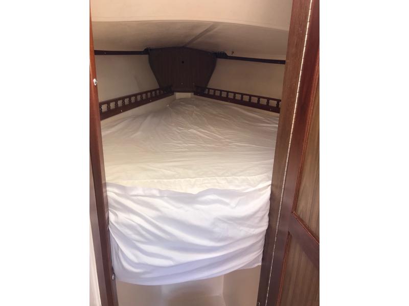 New Throttle and Shift Control 2018 > > > New Fuel tank and fuel line 2018 > > Sails/Rigging > Aluminum Mast > (2) Harkin winches > North Sails Mainsail with 1 reef point and 110 genoa bought both are in great condition. > > Other equipment > Most teak in cockpit recoated 2018 >Tiller handle redone in 2018 >AM/FM/XM/CD stereo with 2 >Boss Marine Speakers in the saloon >Folding bimini with cover. (Cover needs to be resewed or replaced) >House battery and separate starting battery new in 2018 >New Mattress custom pad in >V-berth 2018 >Magma Original Marine Kettle Gas Grill