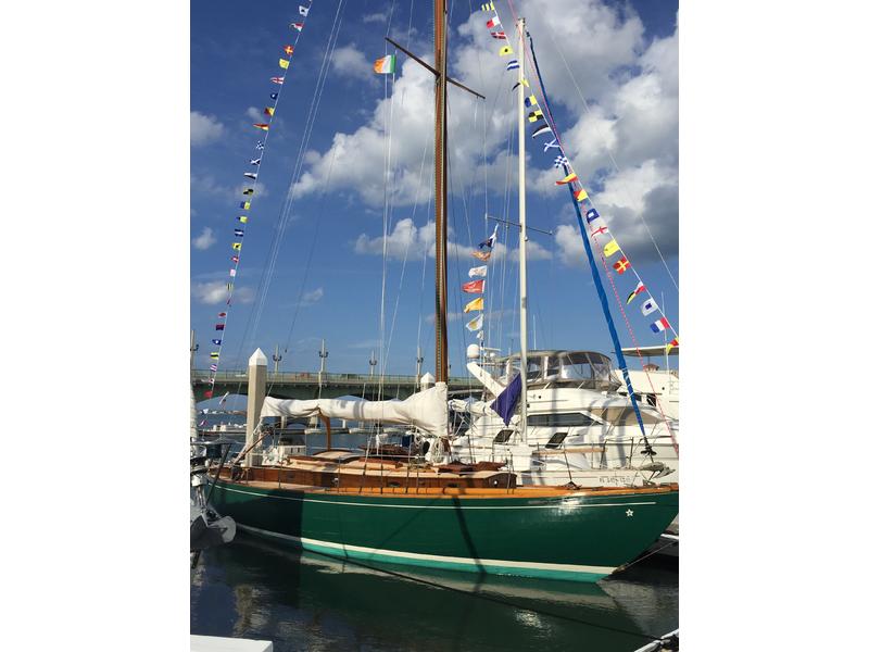 Actaea was the first of the Concordia 41's. She was conceived and designed by The Concordia Company (Hunt and Lowland) and was built to the highest standards by Abeking & Rasmussen in 1953. She became the flagship of the New York Yacht Club under Commodore Henry Sears and in 1955 placed first in class "C" and first overall in the (then) famous New London-Annaplois Race. Actaea has always been set up with a short bowsprit and a 7/8 sloop rig.