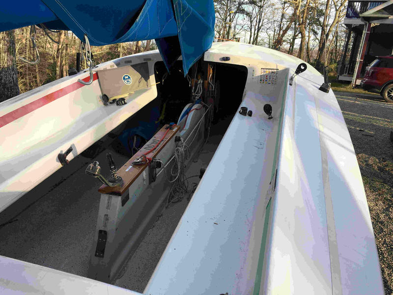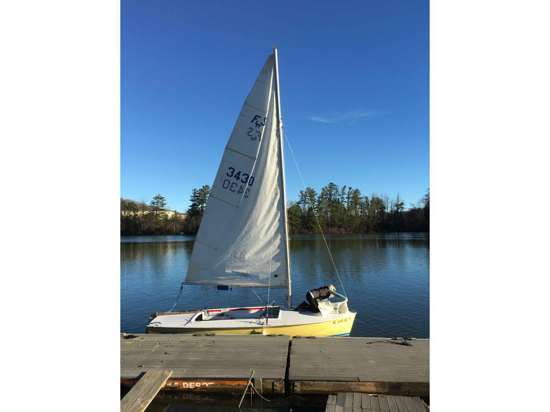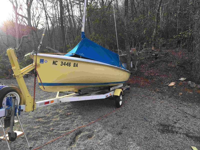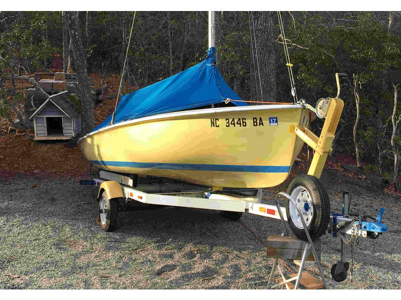 Hull number GDB020880979 $4,500 I have owned this boat for the last seven years and fresh water sailed in and around Asheville NC. The previous owner as good old Charlie Buckner who raced her for many years in the Carolina Sailing Club. The boat has original gelcoat yellow hull with white painted topsides. The boat is fully race rigged with: Rear led spinnaker sheets exiting at seats Spinnaker halyard takeup reel aft New Spinnaker ring on mast New Jib track cars with standup blocks 2x1 jib sheets Outhaul 6:1 internal Cunningham 6:1 Vang 12-1 below the forward deck, cleated aft Standing rigging replaced in 2017. Below foredeck turnbuckle replaced 2018 Mast rake set at 28 5 with correct tension at shrouds. Mast split rings replaced 2017 All Mahogany refinished in 2017 Tiller refinished with 5 coats 2018 Rudder pin sleeved in brass tube for like new tight fit Centerboard faired and polished to 1200 grit 2018 Centerboard pennant upgraded to non-stretch line vs older stainless cable Bow bag in good shape Stern boarding ladder