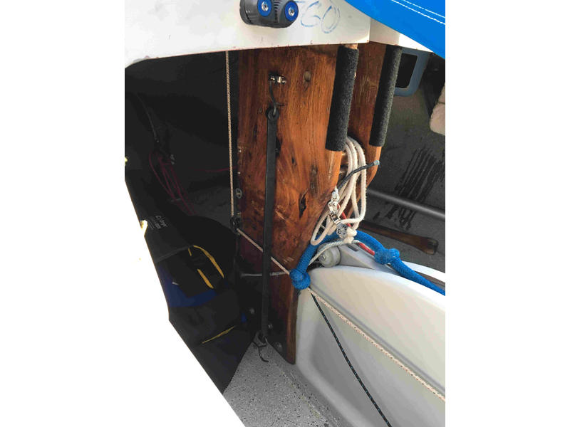 Sails are Schurr with loose rig jib in good condition. Batten pockets have been recently reinforced as well. Trailer is long steel trailer that has been completely renovated: Stainless Steel fasteners. New brackets, new bunks, new rollers. All new LED submersible lighting. New winch strap and hook. Winch recently replaced Reinforced Repainted. Includes new spare tire 2017.