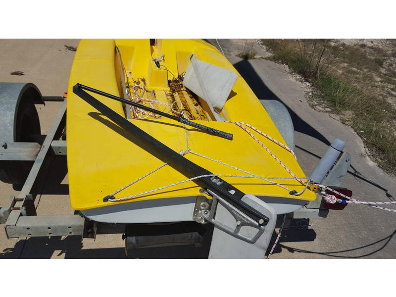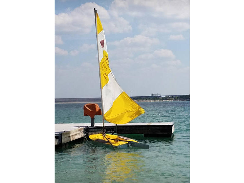 Amazing dinghy to get out quickly and easily on the water. Intended for 1 adult or 2 smaller people. Stored in garage, on oversized trailer. No need to register as it's under 14 ft. Get ready to set sail!