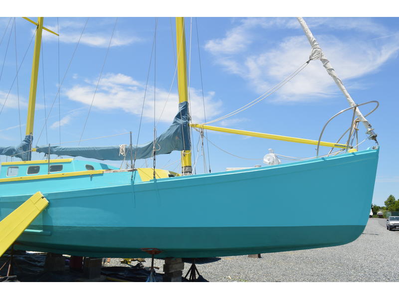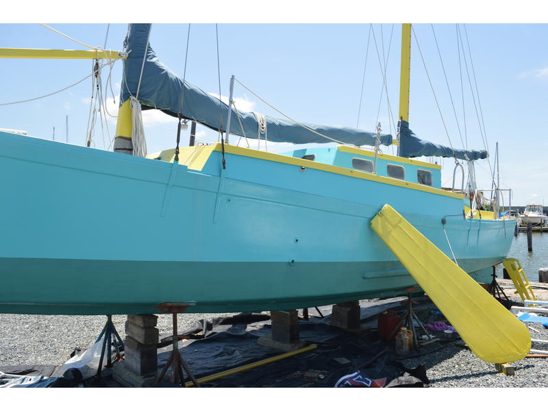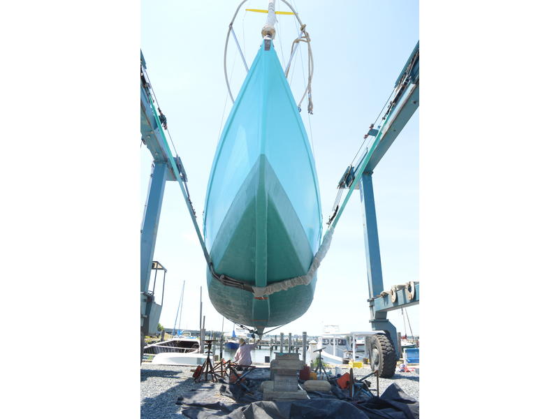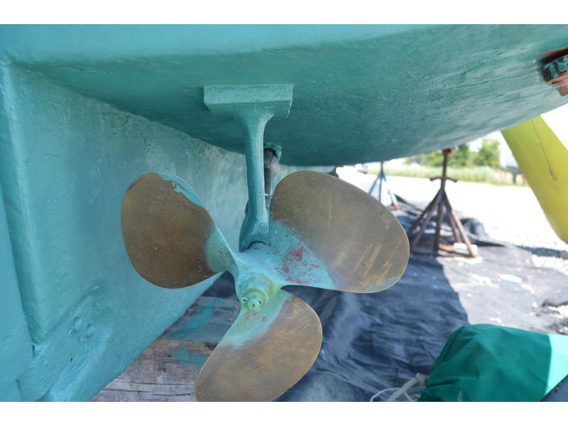 Though this vessel is a wooden Boat, the builder fiber glassed the vessel's bottom up to the sheer, about 1980. This project was well done, and to this day no separation has occurred. It was done by the Alan Vaitses method, using stainless steel staples to attach the fiberglass to the boat itself.
