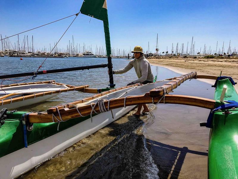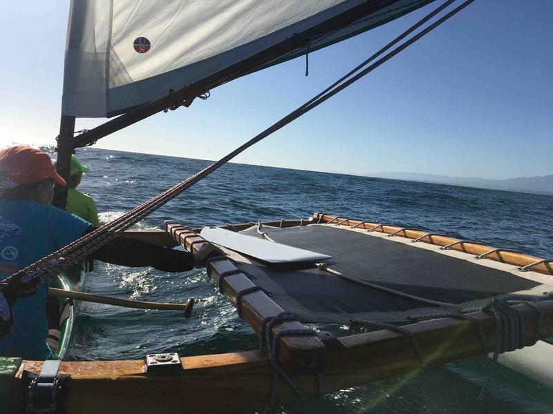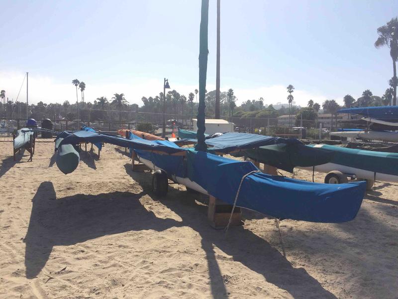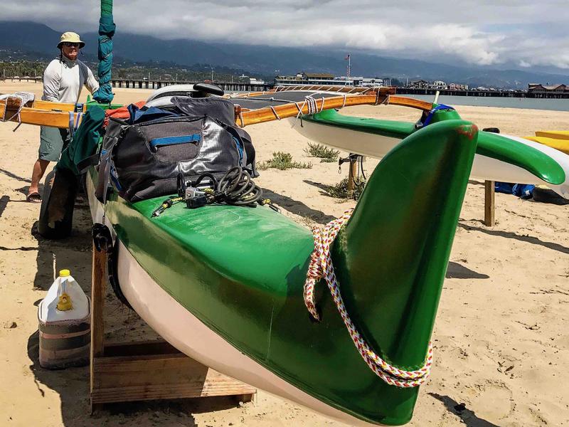 Outrigger sailing canoe in great condition, Mark I hull with latest mast and sail, all gear included: covers, beach wheels, trailer, cockpit covers/skirts, steering paddle, etc.