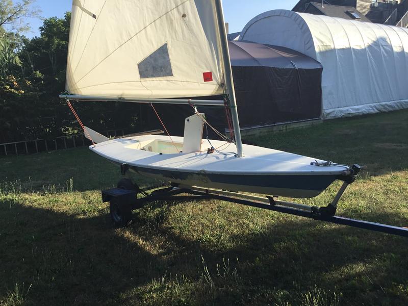 Hull and sails in good condition. Includes centerboard, rigging (basic), dolly. Classic and/or radial masts and sails available.