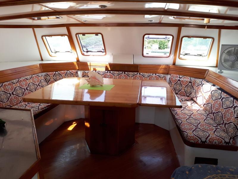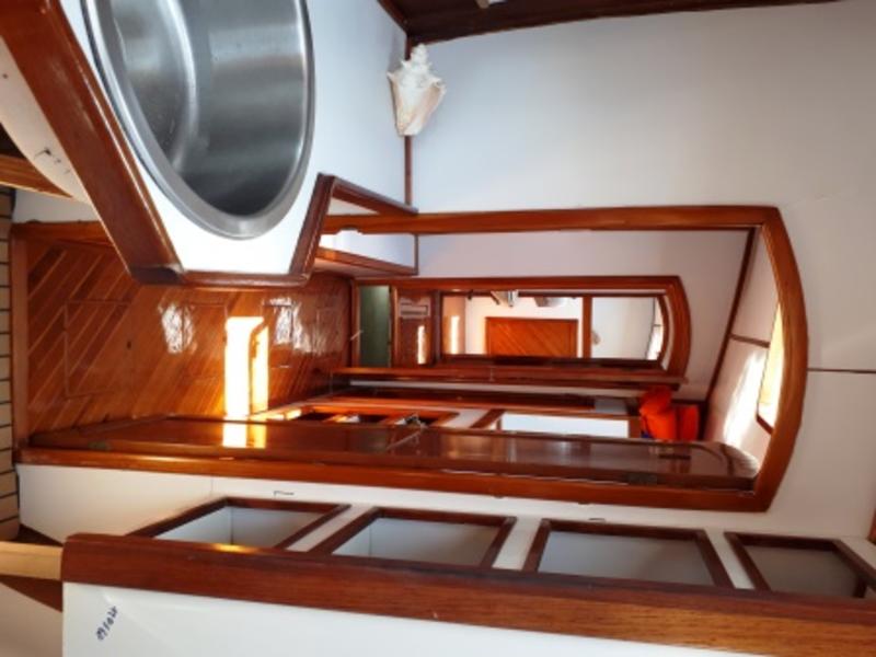 MADE: Composite in West System, stripe planked with red cedar, Nomex, Epoxi and Fiberglass, SELINA 2 is a good cruising boat, not a racer. She is equipped with all items to cruise independently from energy (diesel) with good comfort.