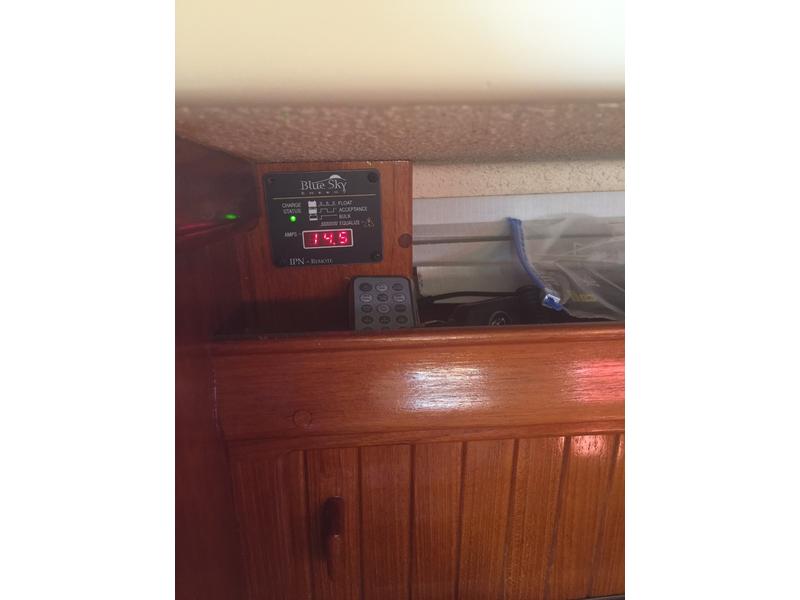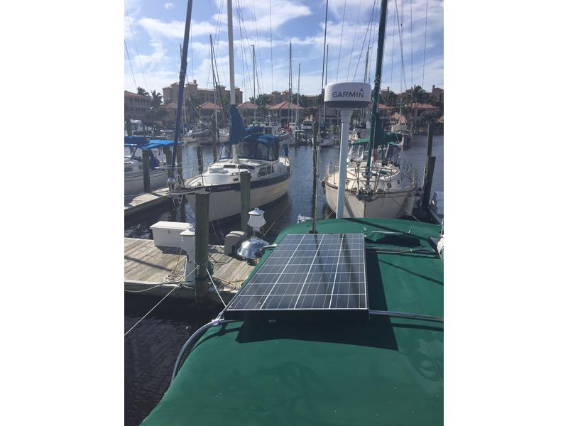 28 HP Yanmar with low hours. Oil changed every 100 hours. New cutlass bearing 2014 - bottom painted May 2016 w/ Trinidad Copper and the hull top and bottom fully detailed. New zippers on Bimini May 2016. Garmin radar HD1800 installed along with Garmin Sirius XM weather and radio. Horizon matrix VHF with RAM -Kenwood SSB radio w/modem - Garmin 740 GPS chart plotter networked w/radar & Sirius Weather 2015. Raymarine ST60 wind speed direction- auto helm Tridata knot meter - log and depth sounder -Autohelm ST4000 along with 2 135 watt Kyocera solar panels monitored by Blue Sky energy gauge keeps boat powered up. 4 12V AGM batteries charged by Raritan 30 amp along with the solar keep batteries topped off at all times. Avon dinghy w/3.5 mercury outboard included