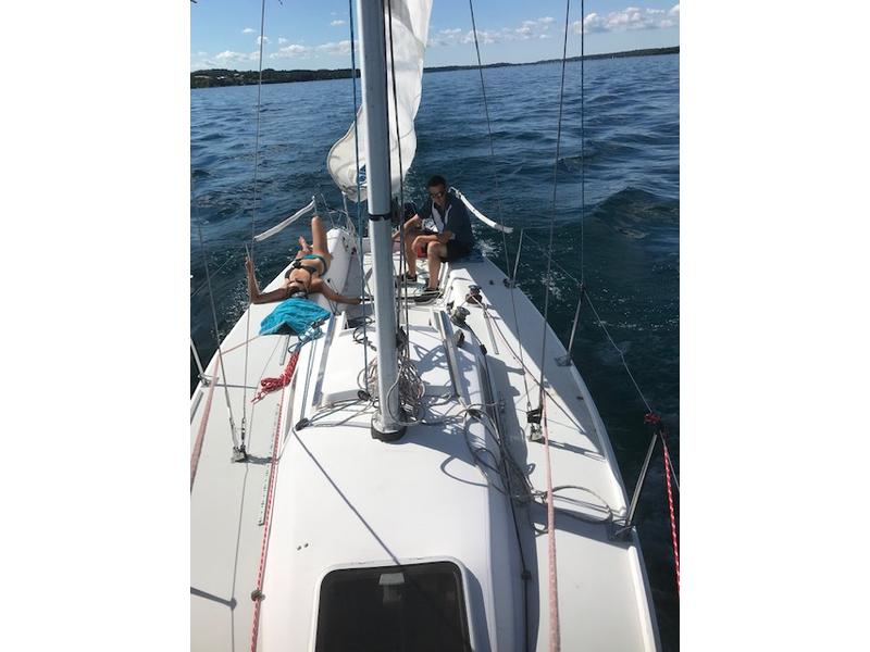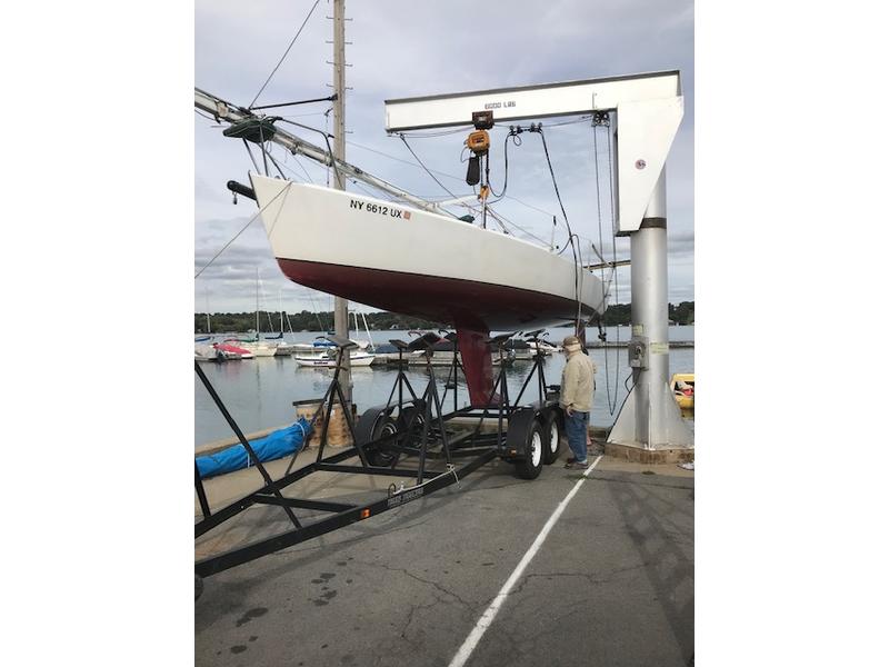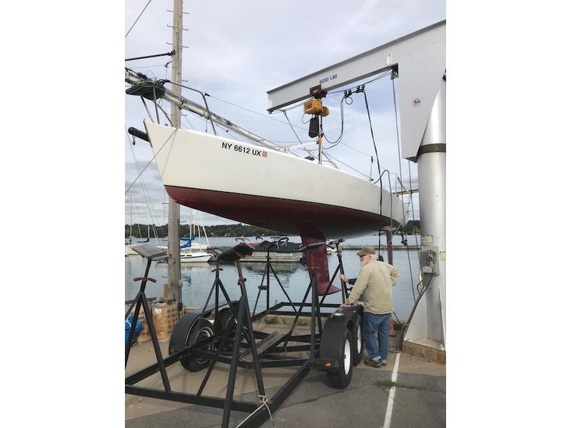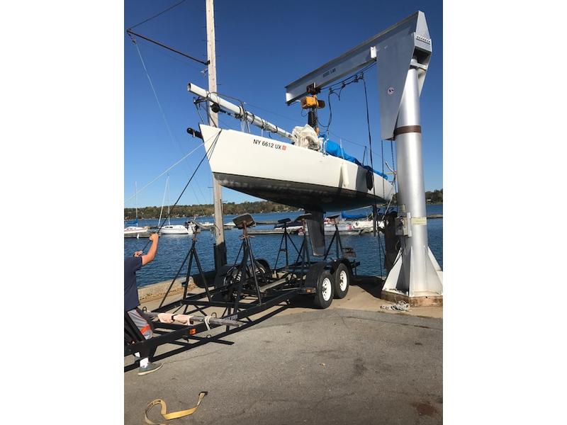 -Triad double axle trailer with brakes on all 4 wheels. Brand new tires & wheels. -8 Horsepower Mercury -2 Suits of North Sails -Good club main sail w/ spare club main -100% Genoa in very good condition -2 Spinacres, 1 brand new, 1 practice -Fresh VC17 Bottom Paint. -All cushions in very good condition. -Clean interior -Tapered spinacre pole -TackTick Micronet Race Master -Raymarine ST1000 Autopilot