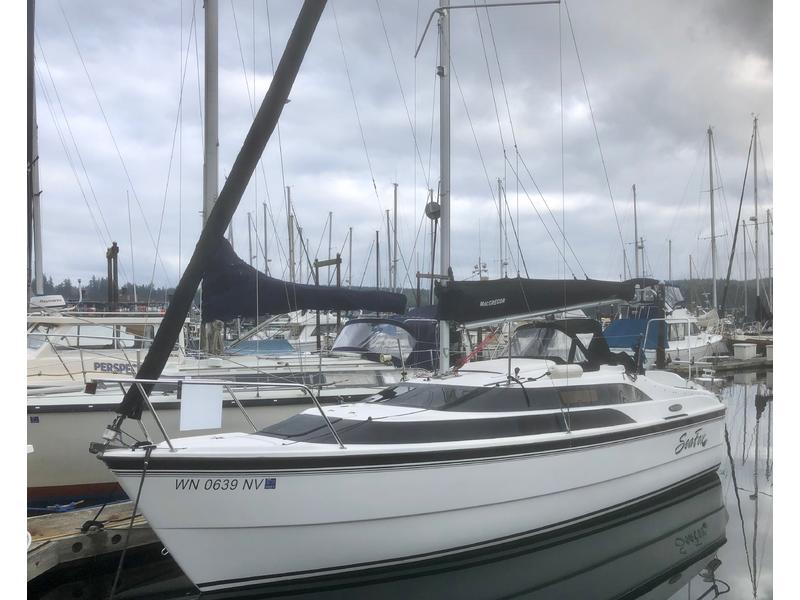Sleeps 5 with full compliment of associated live aboard equipment including galley, head, 3 berths, stereo and interior lighting. Equipped with a roller furling headsail, main stacksail, dodger, wheel steering and 70hp outboard.