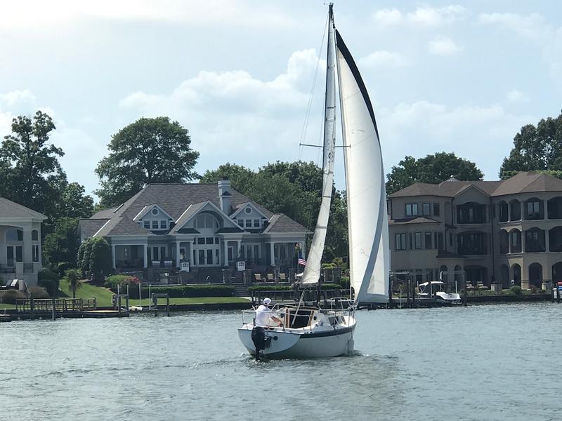 Sailboat good condition. Hull in great shape. New Lewmar self tailing winches, Harkin roller furler, Honda engine just completely serviced, bulkheads just replaced. In slip at lake Norman sailing club. No trailer.