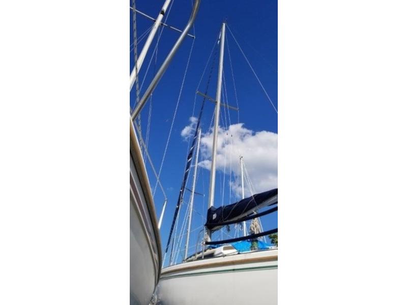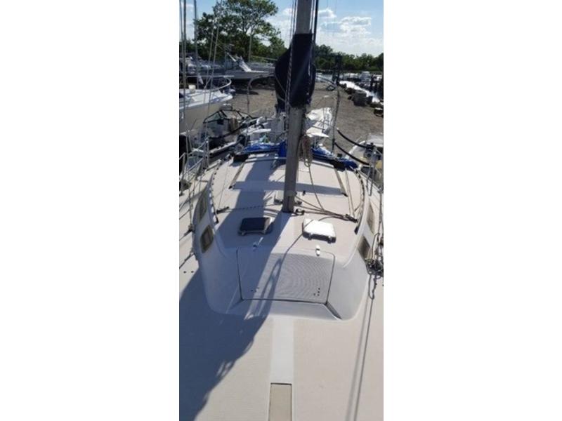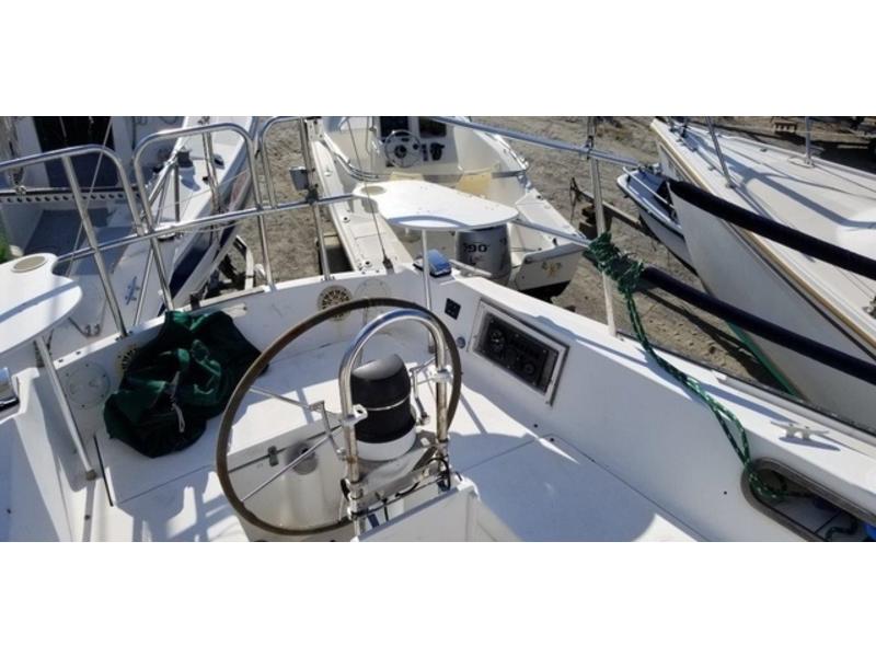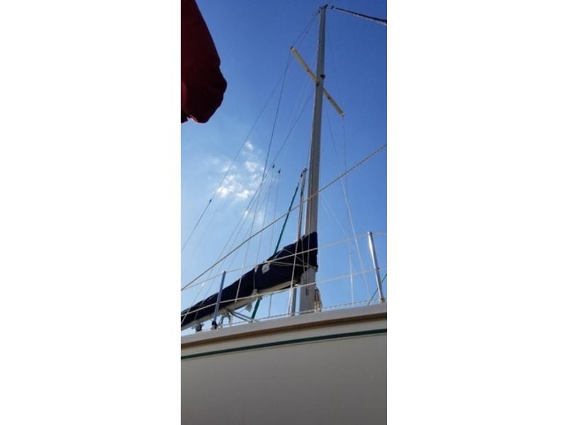 All the hardware is top notch from Lewmar self tailing winches to triple blocks on boom.