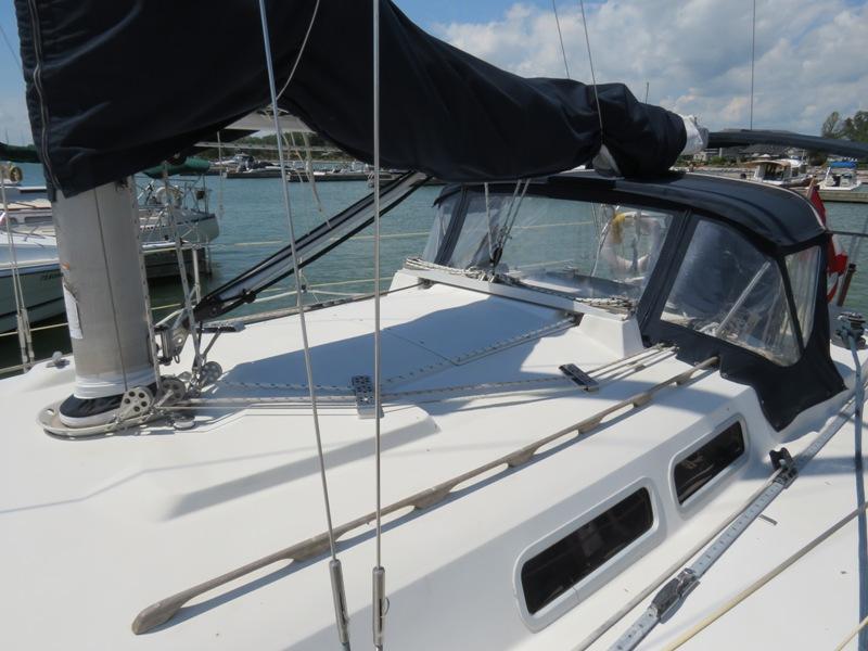 In really good condition, many upgrades including sails, instruments (radar), air conditioner and a diesel engine. All work has been profession completed. Asking $34,900.00 (Canadian $). You won't be disappointed when you see her.