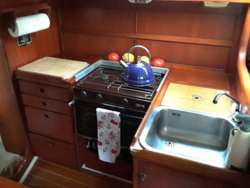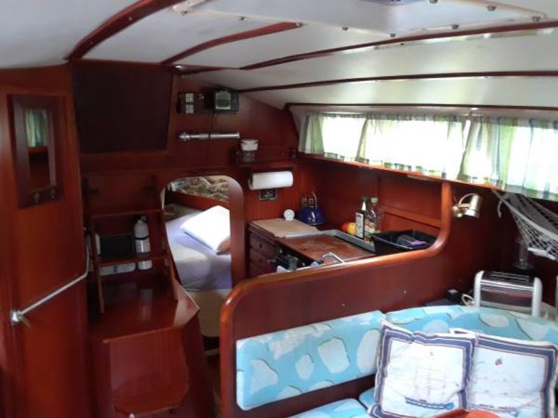10ft inflatable Achilies tender, 6hp Johnson outboard, 6 man liferaft, EPIRB, flares, life jackets, spare 130% Jib and mainsail like new, jeniker with pole, spare storm anchor with chain and 300ft rode. Marine Air AC, Raymarine st6002 autopilot/Monitor windvane, flatscreen TV, VHF hand held, stereo, new water heater, cold plate freezer/fridge, numerous spare parts and complete set of new sails.
