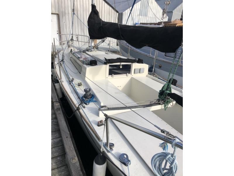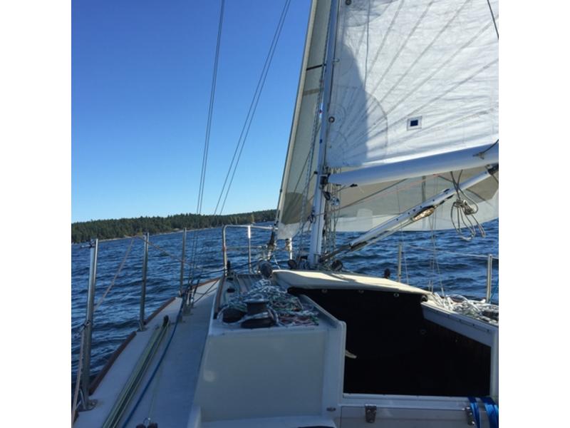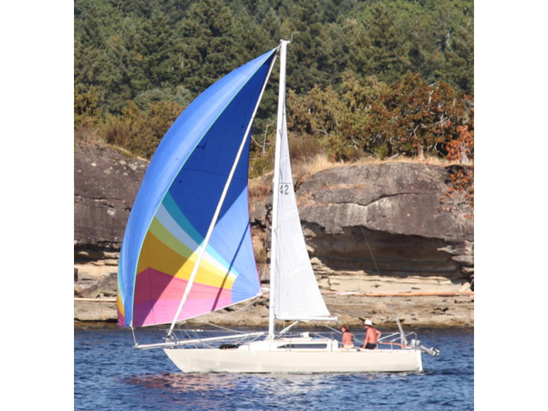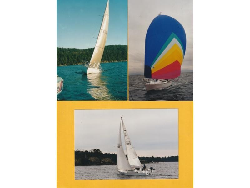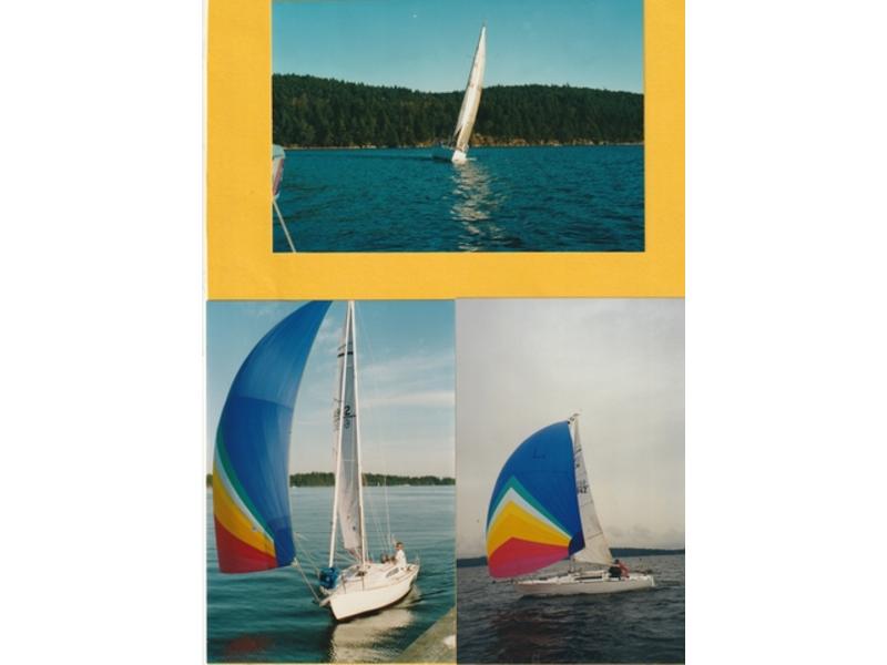 Pleasure Main28.75 Dacron, Pleasure Jib 30.8 Dacron 150 Genoa roller furling Asymmetrical Spinnaker - rip stop nylon, 1 Racing main 26.5 luff X 26.9 leech X 10.2 foot spectra Laminate, 1 Racing jib 30.25luff X 26.75leech X 10.2 foot Spectra laminate, Screecher 32luff X 27.25 X 15 foot 1.5oz nylon light blue and Windseeker 32 luff X 27.8 leech X 9.5 foot 0.75 oz nylon light blue.