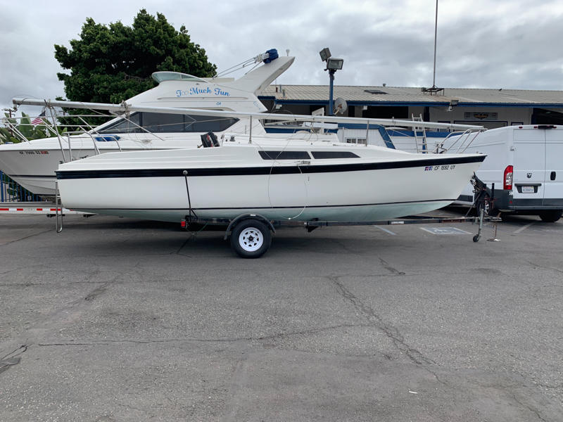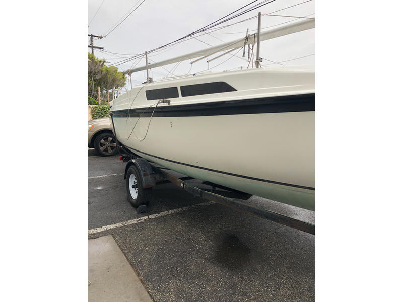 Nice Macgregor 26s for sale. Needs a good bath as its been sitting in dry storage for about a year. I just re-did the swing keel cable and the wheels/hubs on the trailer before I parked it. The is in very nice condition, no cracks in the fiber glass or anything like that. There is a small reinforcement I did on the motor mount to keep it from digging into the hull but you cant really notice when the motor is attatched. Sails and riggings are in great shape. The plastic around the rigging is cracking but that has no effect on performance. Also there is some tearing in one of the cushions, see attached photos.