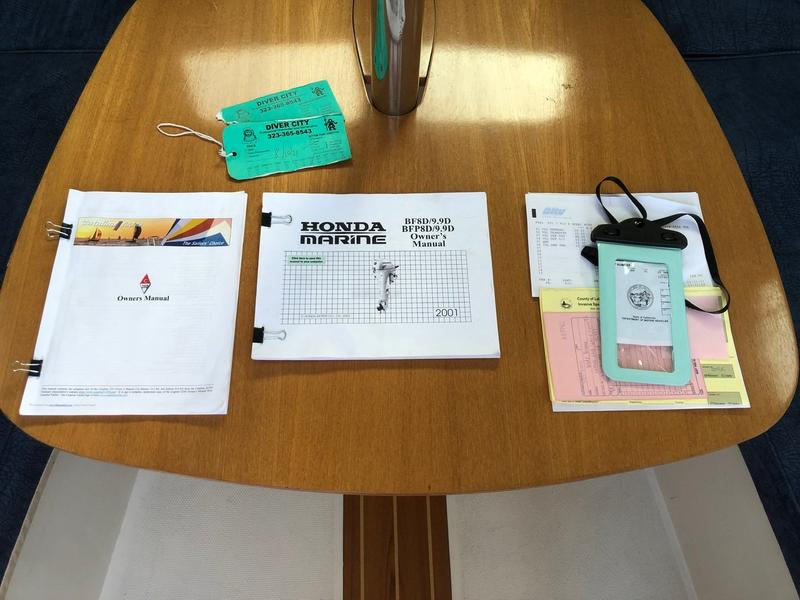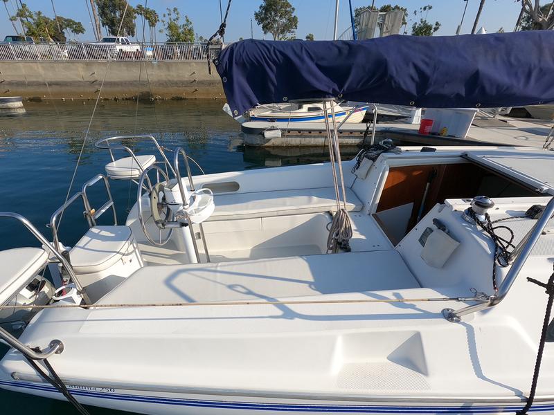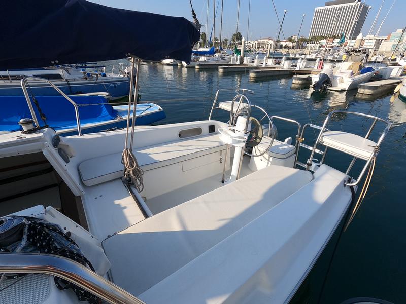 - Wing Keel (not water ballast) - Upgraded fiberglass rudder from Catalina Direct. 3yr warranty (stock rudder is a common point of failure on C250) - Edson Wheel steering - Raymarine Autopilot - Raytheon depth & speed sensors - Outboard Honda 8hp - Bottom regularly maintained by Diver City - in fair condition. (Picture shows bottom paint in JUL 2019) - Sails in very good condition, always covered when not used. - 1 main anchor, 1 stern anchor. - Half of the rigging has been replaced 2 years ago. - All safety equipment (life jackets flares horn PFD- fire extinguisher)