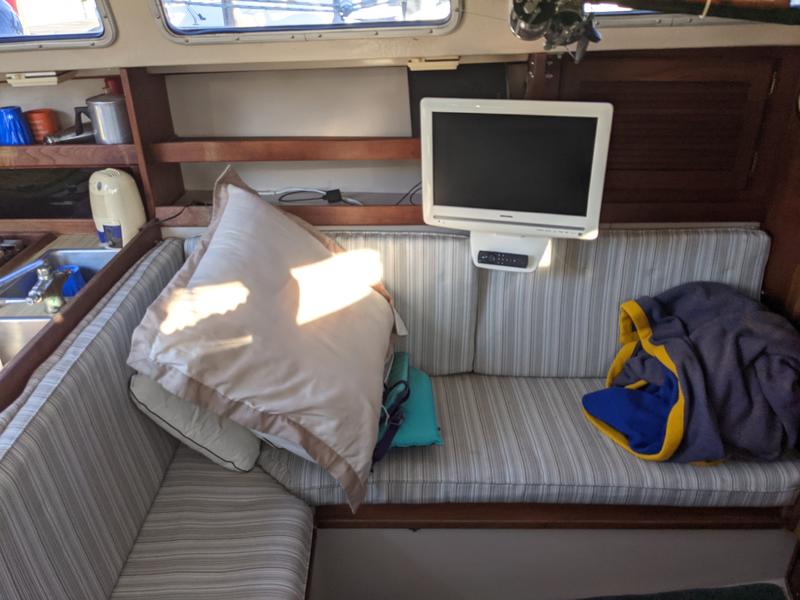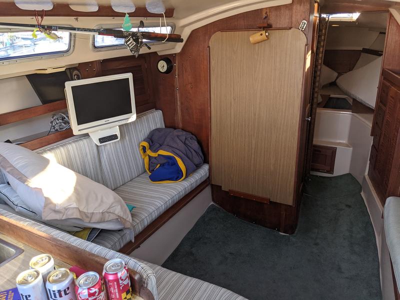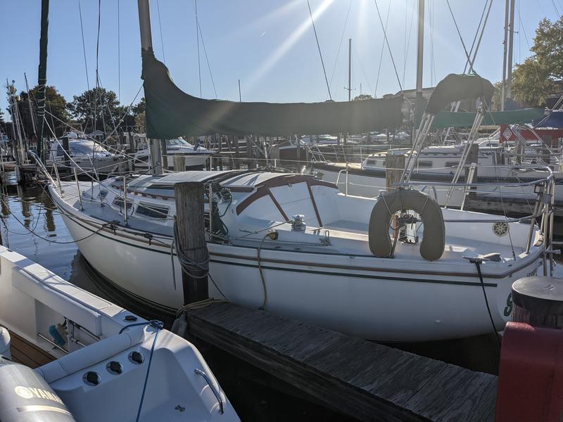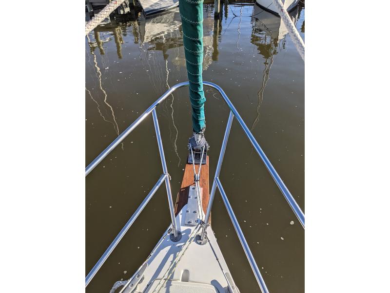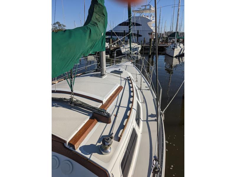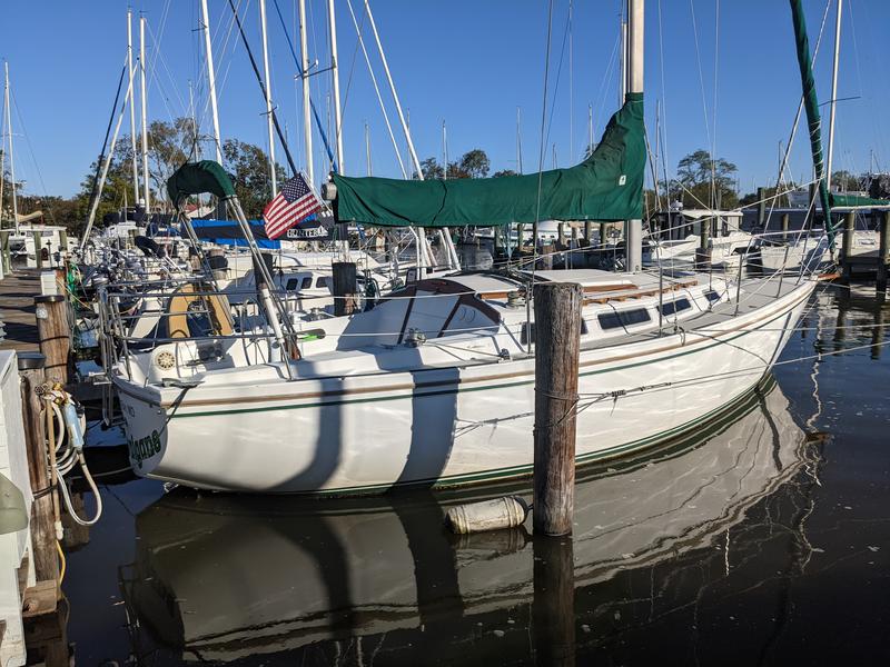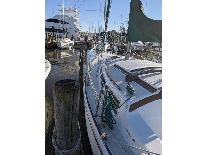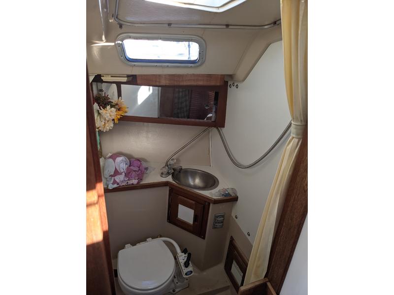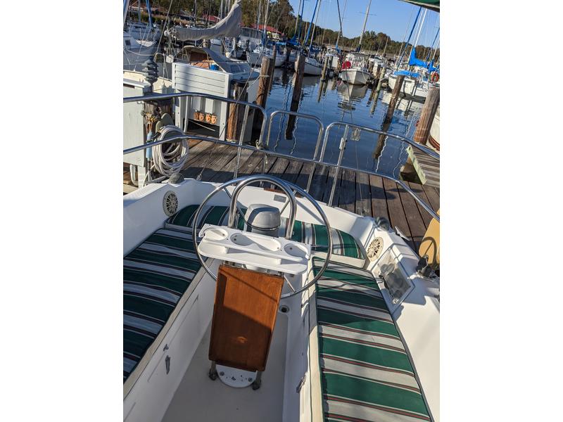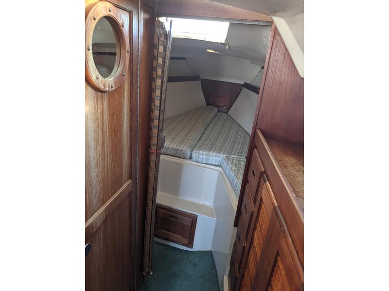 Marine head, sink and shower holding tank 15 Gal macerator - inoperable Hot and cold pressure water system 2 water tanks Galley two ss sinks, two cabnets w/draws, two burner Force 10 natural gas stove/oven ,icebox, sea water pump Salon w seats 6 Berths 3 sleeps 6 Clothes locker Navigation station Edson Pedestal wheel steering Emergency steering if wheel steering fails Emergency manual bilge pump in cockpit Cock-pit Cushions Bimini Trinidad bottom paint applied in August 2020 SS swim ladder Cockpit folding table