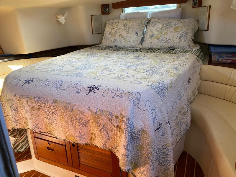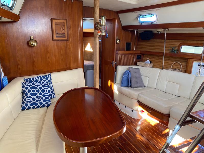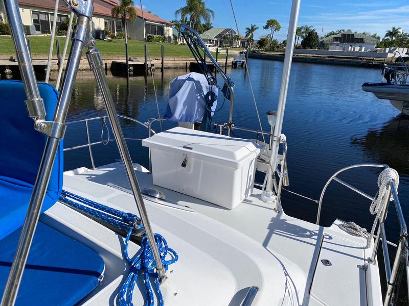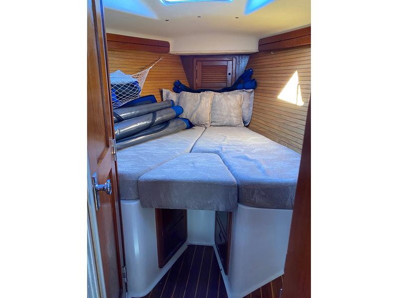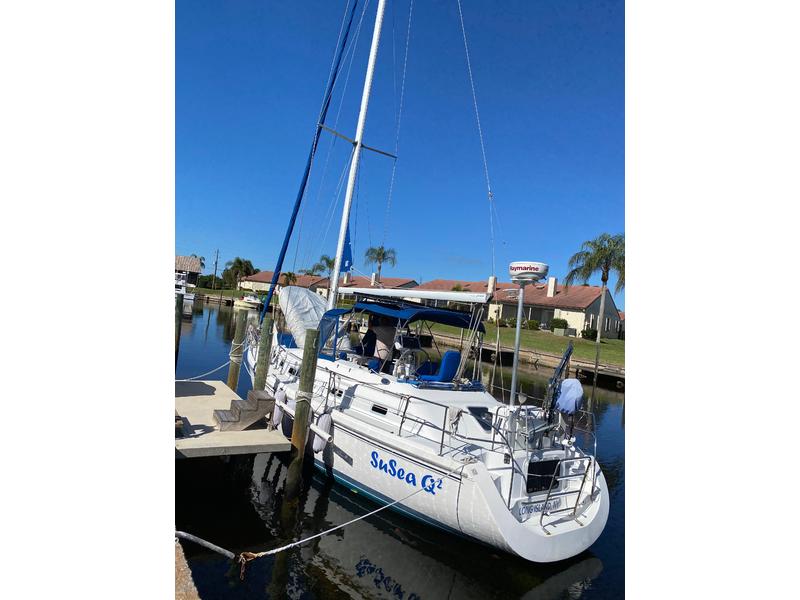 "SuSea Q2" offers a huge amount of space, great for a liveaboard! Large aft center line Master Stateroom with full head, access from stateroom and also from salon, the galley is to port and aft of companionway. The salon is open and airy with dinette to port and along settee adjacent to starboard; aft of settee is a Nav Station with able space for charts. Moving forward is a V berth with head. 16000 BTU Reverse Cycle heat/air conditioning. On deck she carries a furling Main sail and furling jib; new Raymarine Hybrid touch E125, 18 Raydome Radar, i70 Wind, Speed, Depth, mounted at the helm along with Raymarine P70 Autopilot. The center cockpit leaves room for a dock box on the aft deck and makes off shore sailing very comfortable. Flash of history