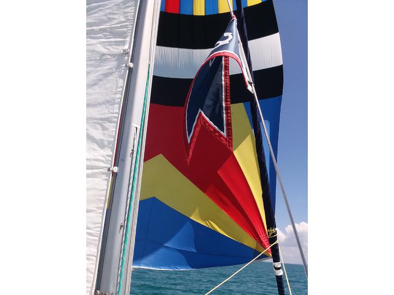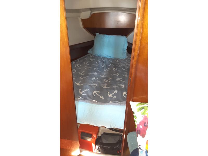 MECHANICAL : Inboard engine ( Yanmar 18 HP) with 2550 hours, 2 blade fixed bronze propeller with zinc anode, electric bilge pump, electric shower/water pump, manual bilge pump with handle, Mabru 16kbtu rev cycle AC/Heat unit. DECK & HULL: Mainsail/full batten setup with 2 reefing lines with new cover, lazy jacks, boom brake, Furling genoa (110%) with new sun protection (sunbrella), Symmetrical spinnaker, All new hatches & portlights acrylic windows. 4x lewmar self-tailing winches, 1x anchor 22 lb. ( simpson- lawrence) with 12 ft. Chain 120 ft lewmar nylon rope.