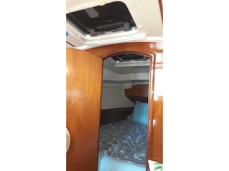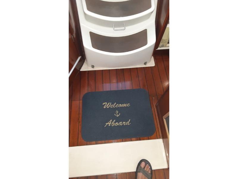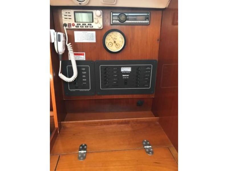 ACCOMMODATIONS: saloon with mahagony & cherry wood finish, folding dinner table, seats 6. Navigation station, cabin lights (some LED) 12 V & 110V Outlets, forward berth with mattress and locker. Bathroom - sink, mirror, teak towel rail, faucet with hot & cold water. Helm seating with teak tops. Dodger & bimini top-full cockpit covered. Folding table, large storage lazarette, barbecue grill. Walk through transom and swim platform. Transom shower, folding stainless steel ladder.