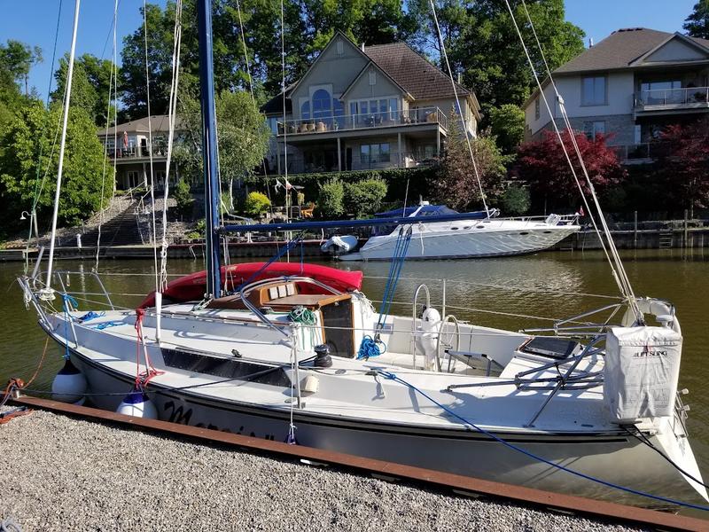 Life's too short - sail and be with nature. Clean sailboat for sale. Chartplotter. Solar Panel. New Harkin self-tailing winches. New head. New tank. Bimini and dodger. Boom kicker. Engine starts and runs well. Volvo Penta MD7A with Saildrive. Center cockpit design with 2 single berths in separate aft cabin. Winter cover and steel cradle. Kayak not included. $9000 US or best offer. Contact Robert. Port Dover.