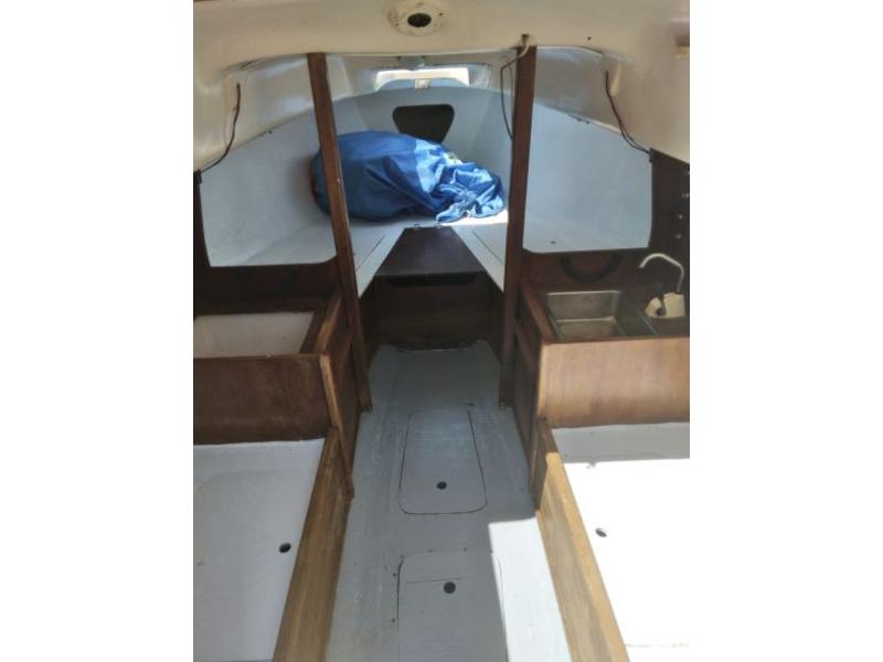 Comes with both rebuilt 9.9 Evinrude (new gas tank) and trailer!. New rub rail and transom backing plate. Decent mainsail and jib, roller furler. Anchor and porta potty Teak cabin with ice box and sink. Needs basic stuff like bumpers and dock lines; give her a name and make her your own.