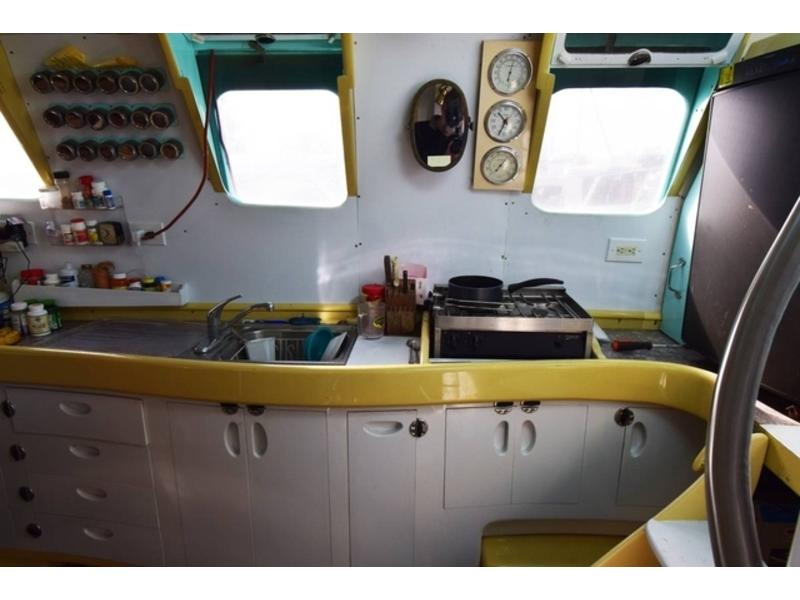 Vacuflush head, plus electric second head. 12 6 volt batteries for house band plus starting battery,125 hp Yanmar diesel 400 hours, 3 to 1 reduction transmission, 4 blade propeller, 2 extra 150 amp alternators on engine with original alt. 370 amps.