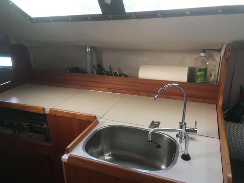 Includes: a rear 2-seater bed and LED light, a bathroom and LED light, a table with a fixed side, possibility of two forward berths, kitchen and LED light (two-burner Oregon stove with alcohol, sink, storage , cooler with compressor), a seawater foot pump and a 100 liter water reserve on a pressurized pump at the galley sink. Bimini, Propane barbecue. Retractable swim ladder,.. Available to Qubec $18000 Canadian dollar