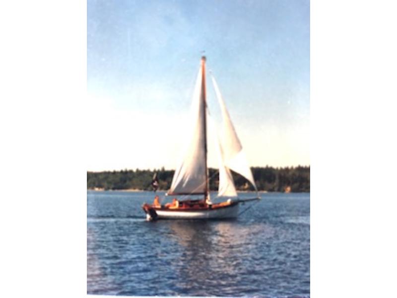 Lyle Hess Bristol Channel Cutter 24.7 on deck Red Cedar planking on oak frames. Yellow cedar deck framing. Teak decks, solid teak cabin. Spruce mast and bow sprit. Sabb diesel with variable pitch prop. Full keel. She is a very beautiful, well-kept and well-loved sailboat. She is the sister ship to Seraffyn which was sailed around the world by Lin and Larry Pardey. She is located in the Puget Sound in a marina in Tacoma, WA. |