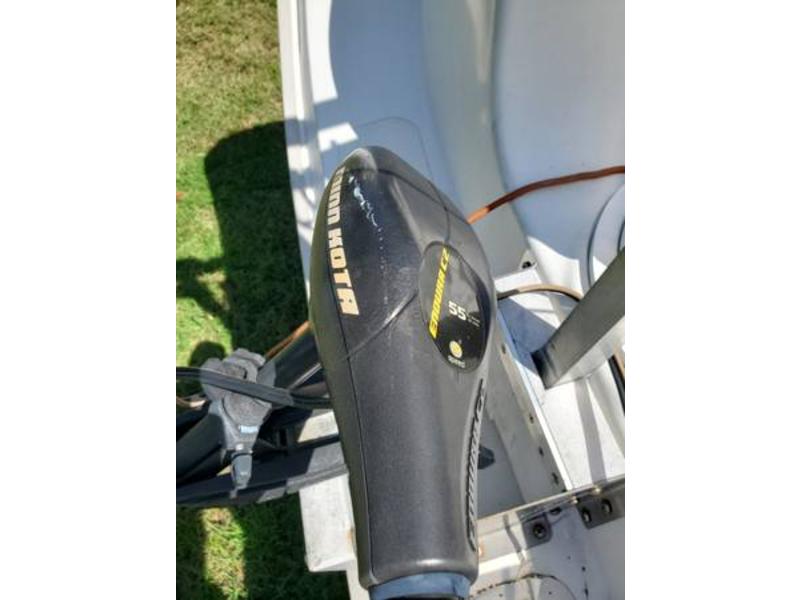 Trailer, Electric Trolling motor (just to get from the trailer/dock to open water). Original furling jib and main sail. Cushions, anchor, life jackets, paddle, battery charger and deep cycle battery.