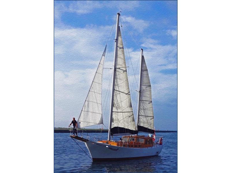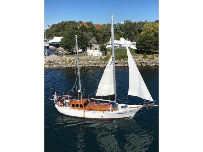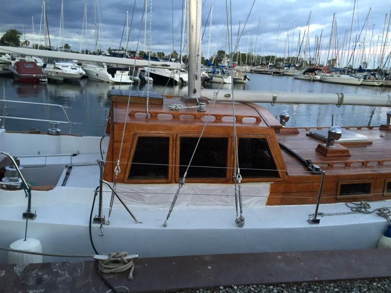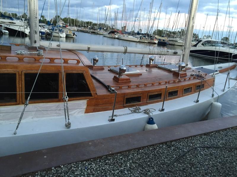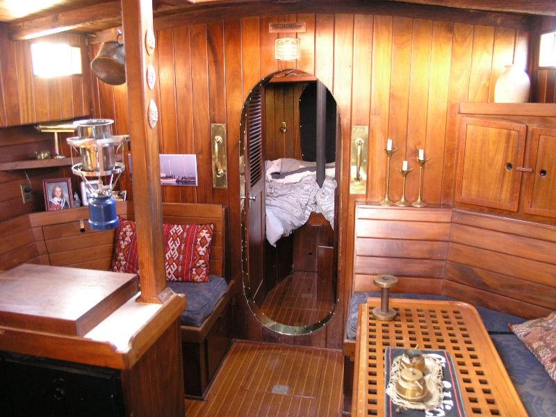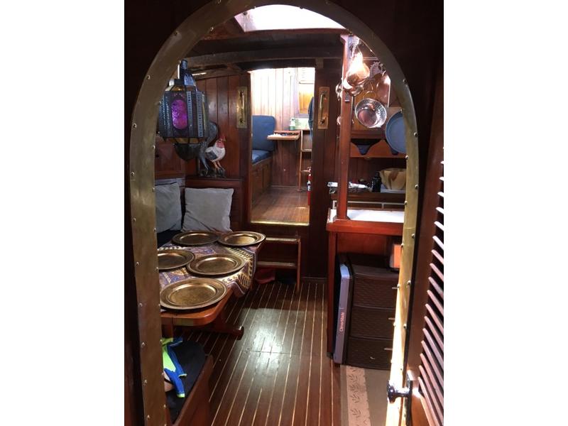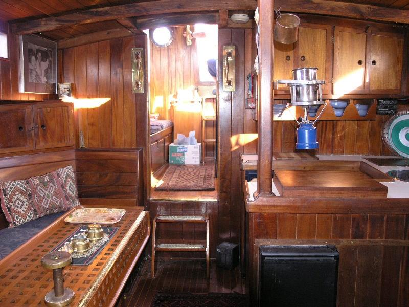 solid professionally built ferro hull with solid teak cabins. interior built with Honduras mahogany, brass, copper.