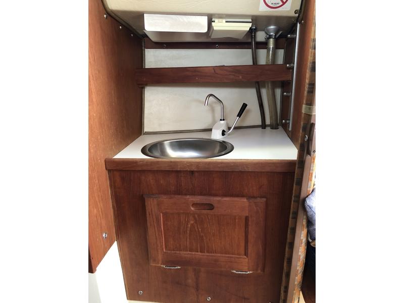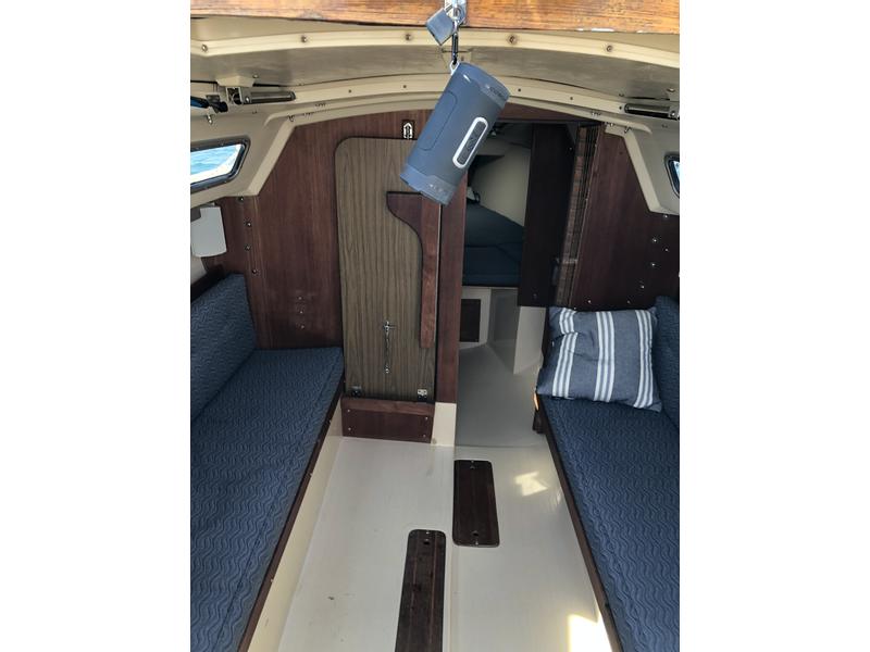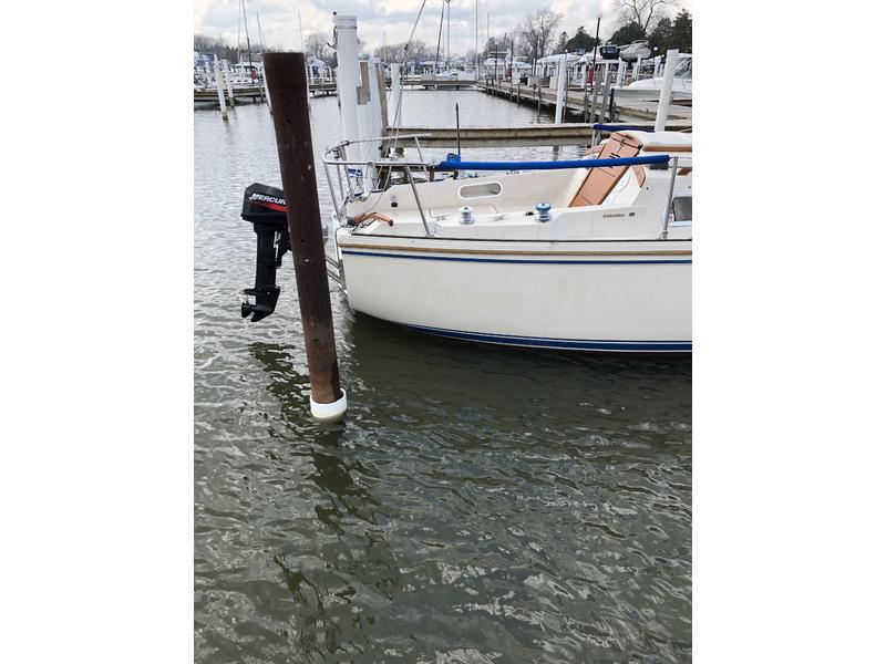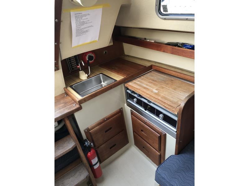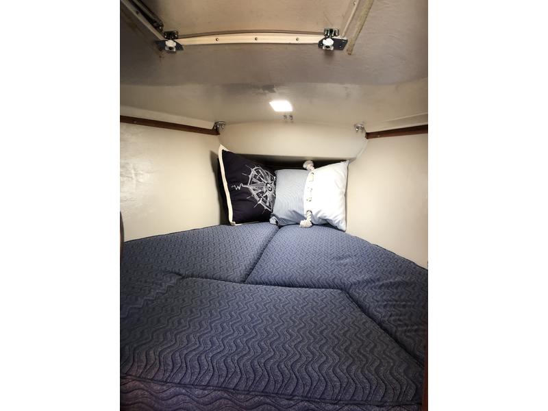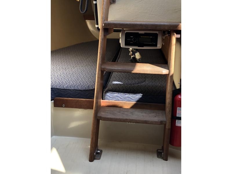 Mercury 2 stroke, 2003 (New impeler, plug and lower gear oil in '22) Harken furler 135 Ullman genoa (fair condition) Ullman main (good condition) Furled storm jib (good condition) Spinnaker (good condition) 150 genoa (hank-on) (good condition) All sails have original sailbags All cabin and cockpit cushions Davis tiller tamer Signet depth and knot meters Sunto compass Canvas for teak mainsail tiller winches crib boards (excellent condition) Teak is in excellent condition Stereo with MP3 cockpit and cabin speakers Dual batteries ('19) and switch wired for trickle charge from motor VHF (needs mast re-wire) Two danforth anchors All coast guard required equipment Running rigging and spare lines in good condition Life ring, vests and flotation Windex VC-17 bottom paint (for freshwater) Pop-top version with hydraulics and pop-top cover Owners manual and handbook including every original document as well as listing of every modification and receipts |