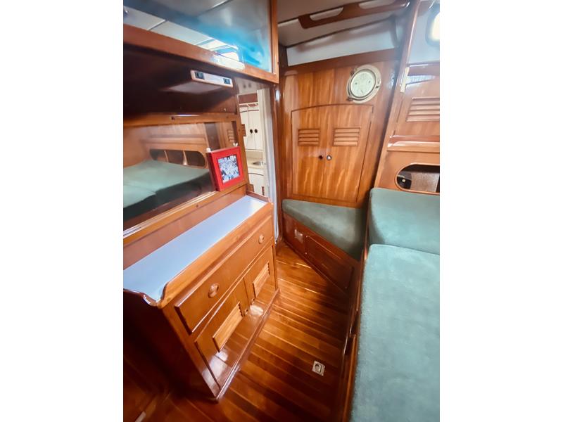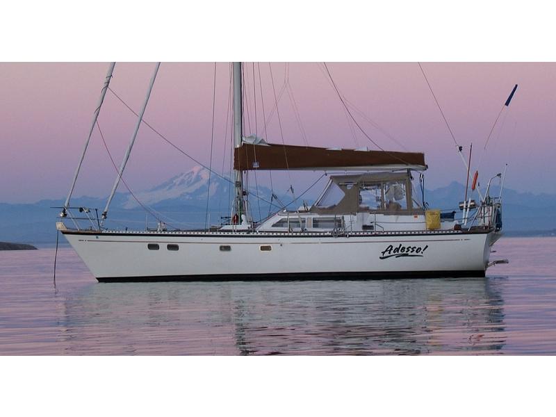 S/V ADESSO is a cutter rigged sailing vessel, built to ABS Standards. Decks, roof, and cabin sides are built using fibreglass/Balsa cored system. Hull is full Fibreglass, well founded and functional. The floor plan below, the open sailing cockpit and deck are well organized and provide excellent use of space, traffic management and emergency exiting.