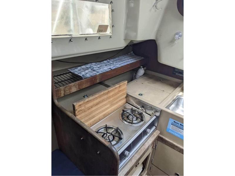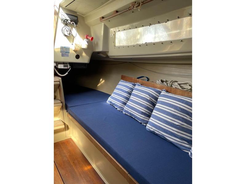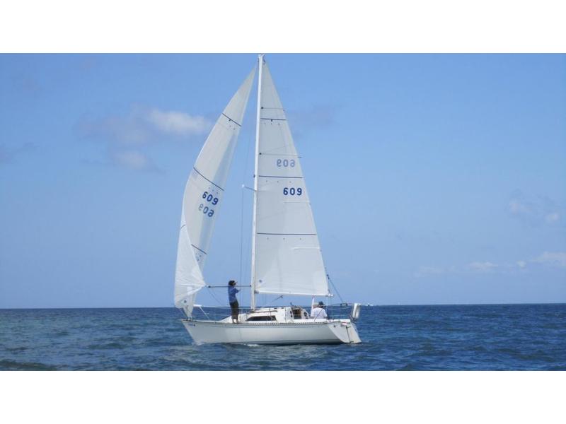 Fast and race equipped with recent sails, folding propeller. Updated interior cushions, marine toilet w 15 gallon holding tank, 10 gallon fuel tank, 15 gallon fresh water. A tandem axle trailer is include.