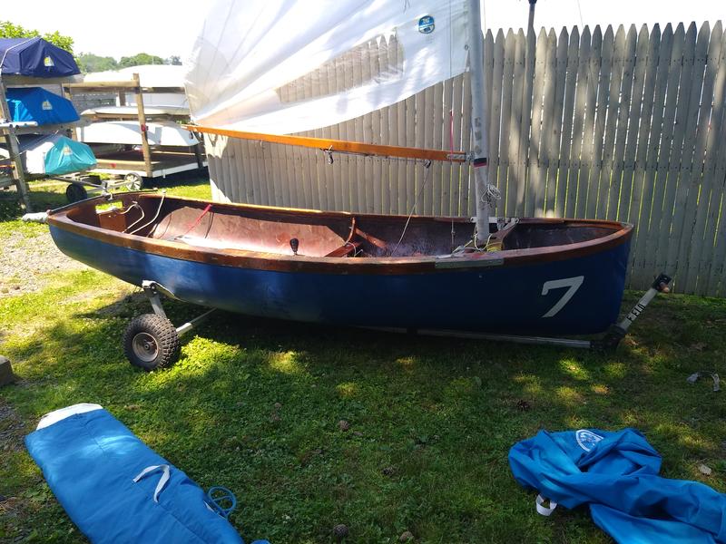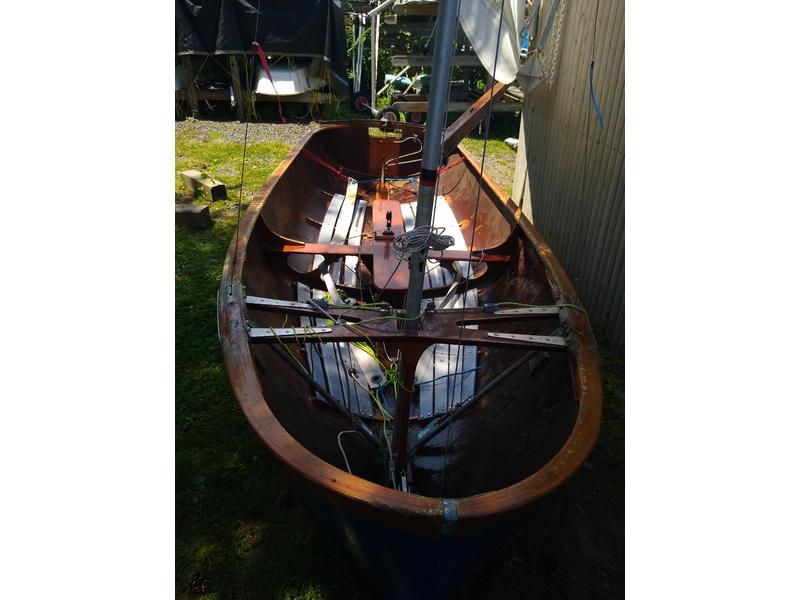 2 sails, in new conditions full set with spars , rudder, tiller and centerboard varnished and painted hull is in good shape