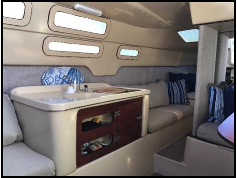 The interior is very spacious with 6 feet of headroom and makes for comfortable extended stays or even live-aboard use. |
