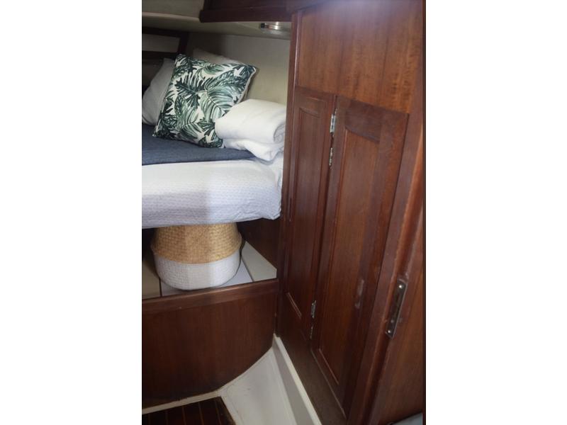 Sylvia is a classic Bruce King design, great racer/cruiser ready to day sail or race. Inboard Universal 18hp Diesel, drip less packing, 2 blade folding prop(original prop also on boat),Racor filters, great engine access, batt charger, shore power cord, etc..