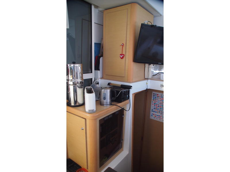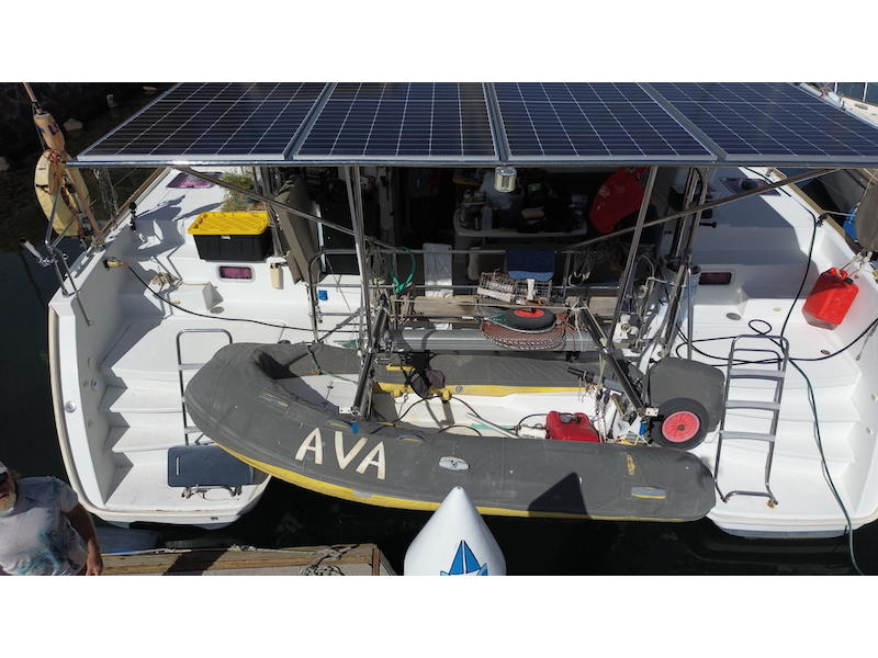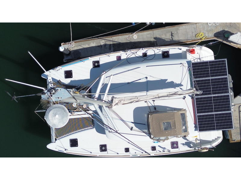 The boat has new 1800 watts of Solar sitting on custom stainless steel mounts which now completely shades the cockpit lounge. Far better than the typically mounted Solar to top of the Salon. New refrigerator in cockpit lounge Ceiling fan in cockpit lounge new Lifepo Lithium-ion batteries 1280 amp hours two new isolated start batteries for each engine new 4000 watt inverter new membrane on 220 volt water maker. No need to run the perfectly functioning Northern Lights Gen-Set since the water maker works perfectly off of inverter and Life-po batteries. New Shore power and battery charger for Lithium-ion batteries. New curtains on all windows. New propellers and zincs and seals on Sail drives New bottom paint in 2022 All new stainless steel Through hulls below water line Roller furling Asymmetrical Jenniker in excellent condition. Eleven ft Caribe hard bottom inflatable dingy with 20 HP four stroke Honda. 15 HP two-stroke back up for dingy. Twin Yanmar 40 HP sail drives with @3500 hours on engines. New Victron Battery monitor Forward Starboard Cabin has been converted to bodega and laundry room Port forward Cabin has water maker under bed Port Aft Cabin has LifePo batteries, solar controller and inverter under bed Starboard aft cabin is Captain's Quarters. Bow sprit for Jenniker was recently rebuilt and strengthened