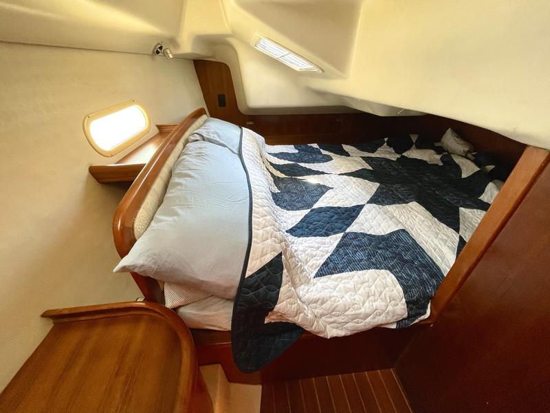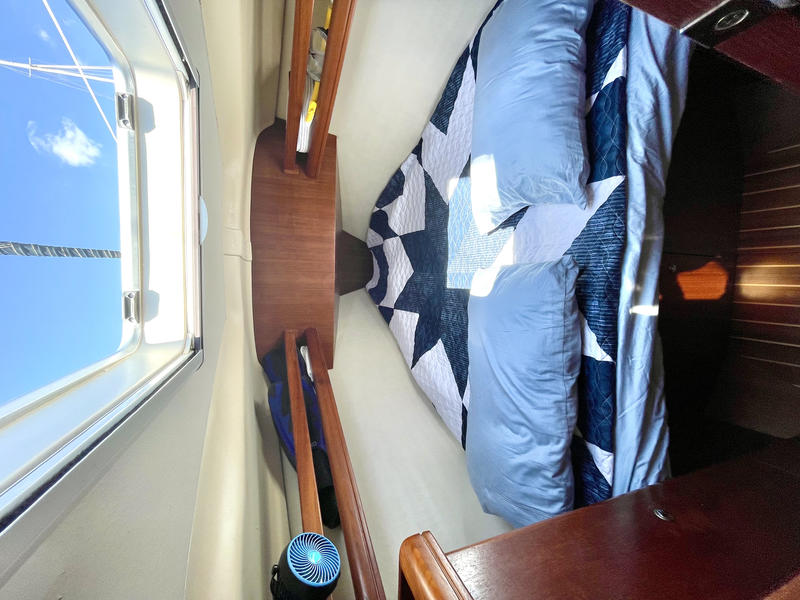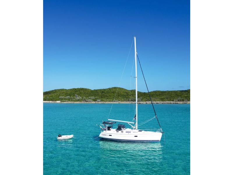 With a shoal draft of 5 foot she can comfortably take you anywhere in the Bahamas and her bulb wing keel makes her perfect for sailing anywhere else! Hunters are notorious for their comfortable living. Her large queen sized aft berth, spacious V berth and the salon 6'8" headroom is certainly testament to this! The salon can be converted in a matter of seconds to an additional double bed for when guests come to stay. With her new solar system and ridiculous amounts of storage you can be off grid for weeks at a time with ease!
