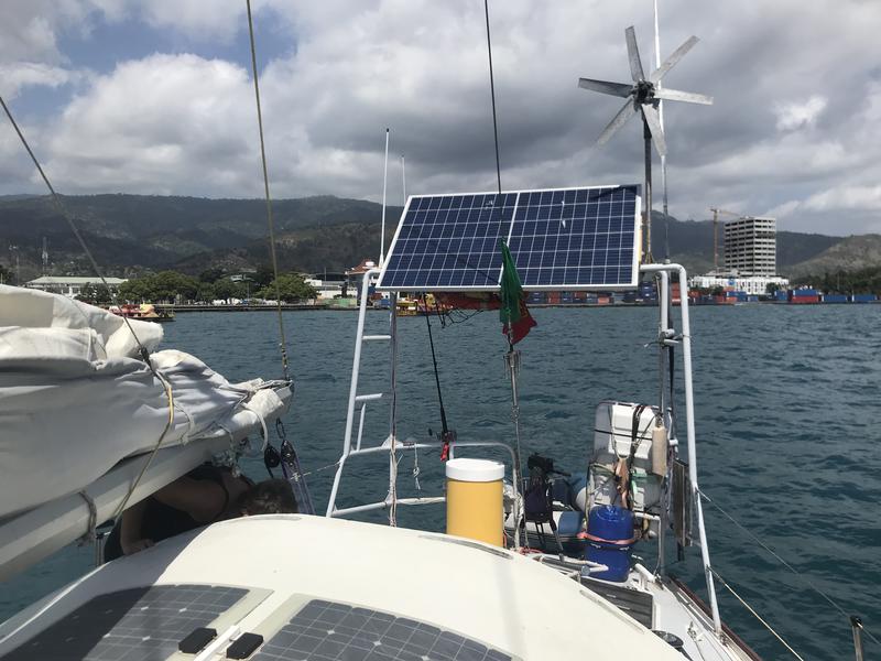 Nasa Battery Monitor, 300w Solar panel in tilting system ( 30% more power) and controller, Aerogen 300w and controller.