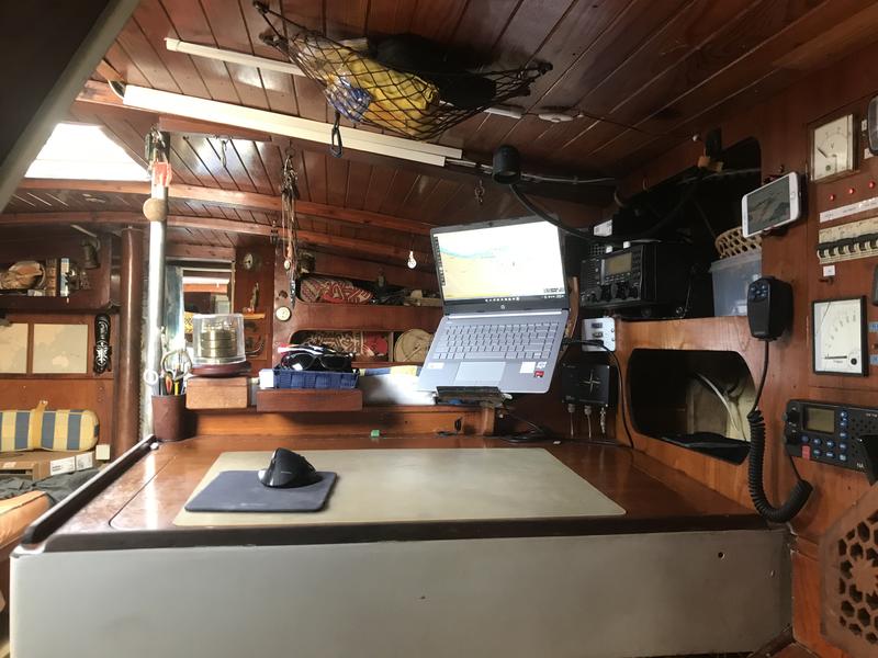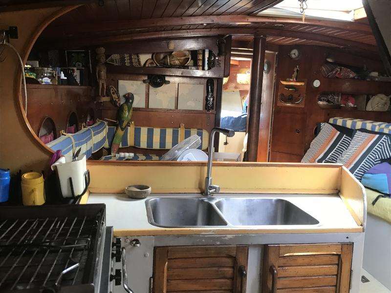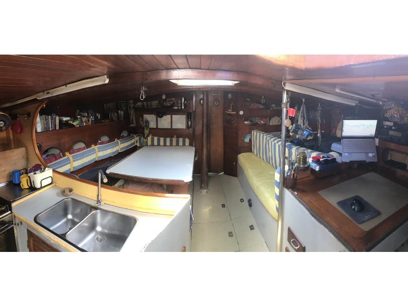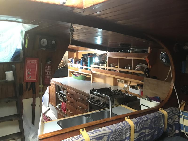 Big chart table, big saloon, big kitchen with a lot of storage, WC (toilet only).
